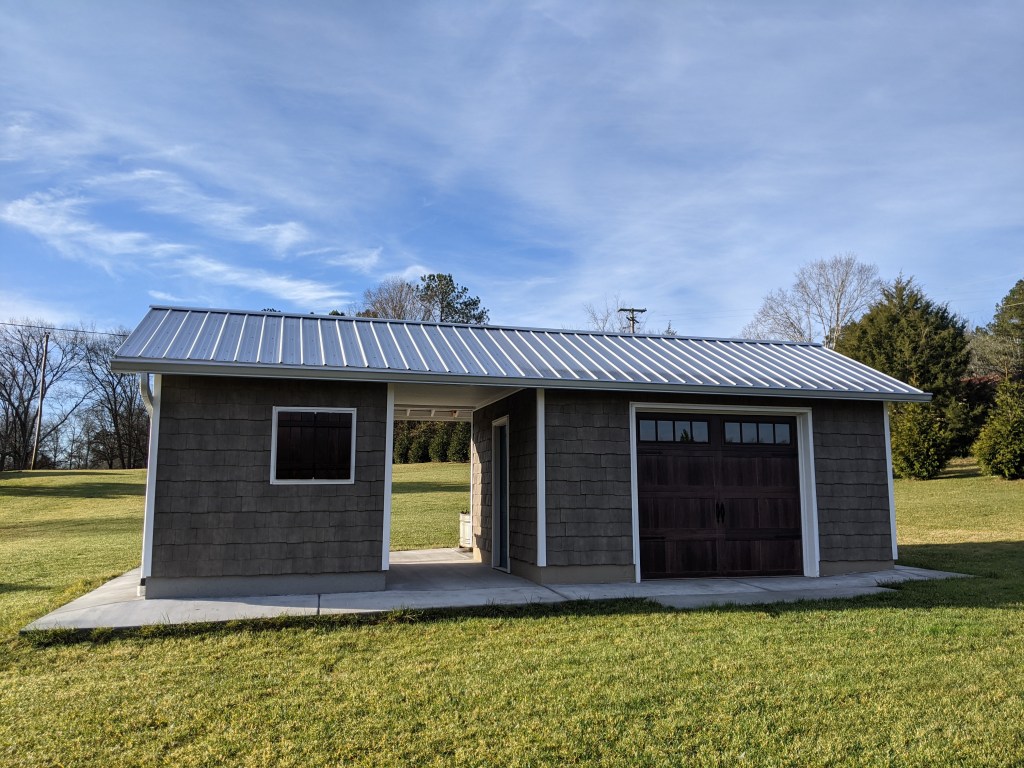 We had to line up the new build with the existing shed to ensure that they were aligned so that the breezeway between them would be level. We also had to remove the outer sheathing and siding in order to tie them together. Eventually we got the new shed and the breezeway completed, though there is still some touch-up painting that we will need to attend to this spring.