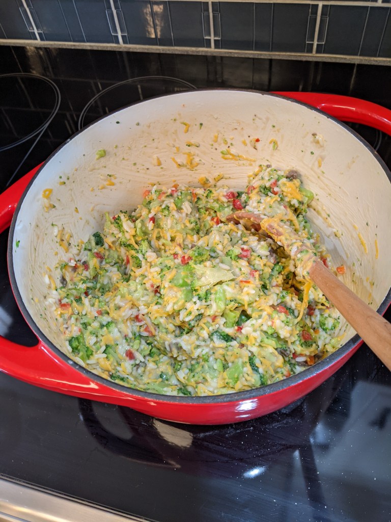 My grandmother used to make broccoli rice casserole a lot. I have updated it here to make it more flavorful with a better broccoli to rice ratio.