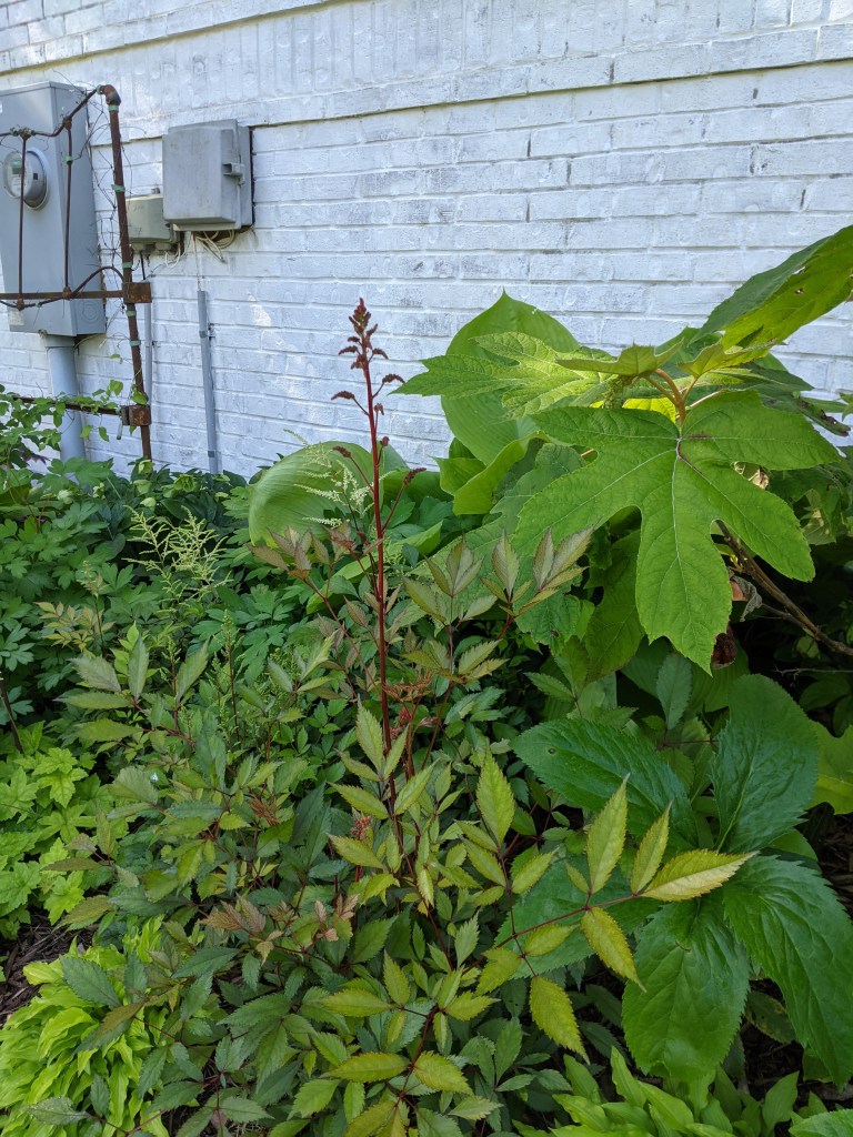 The garden on the north side of the house is looking so good. Everything is really green and lush and some flowers are finished blooming–foam flower, bleeding heart, columbine, and lenten rose. BUT, some new flowers have picked up the baton and are running with it.