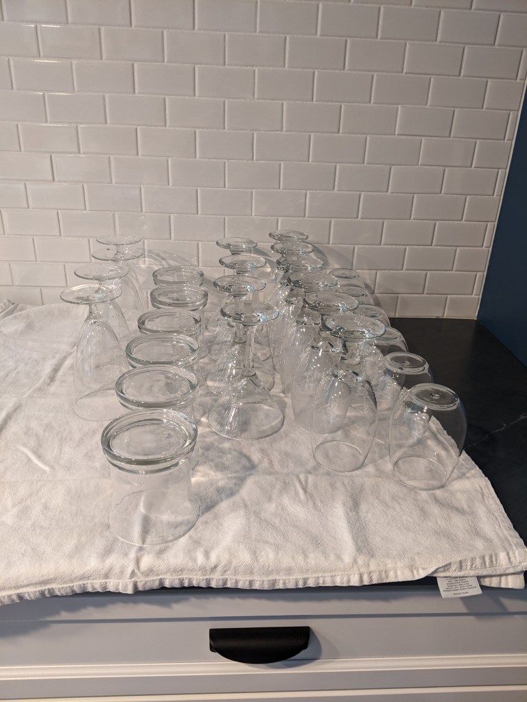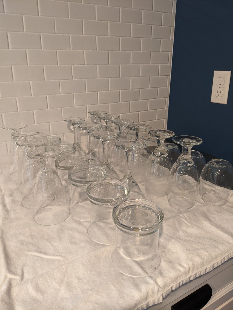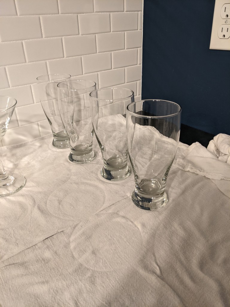 So that Chris would have a fully functional bar, I have been on the prowl for all sorts of glasses for it–mostly at the Samaritan Center in Ooltewah. I paid between $.35 and $1.00 for the glasses from there.