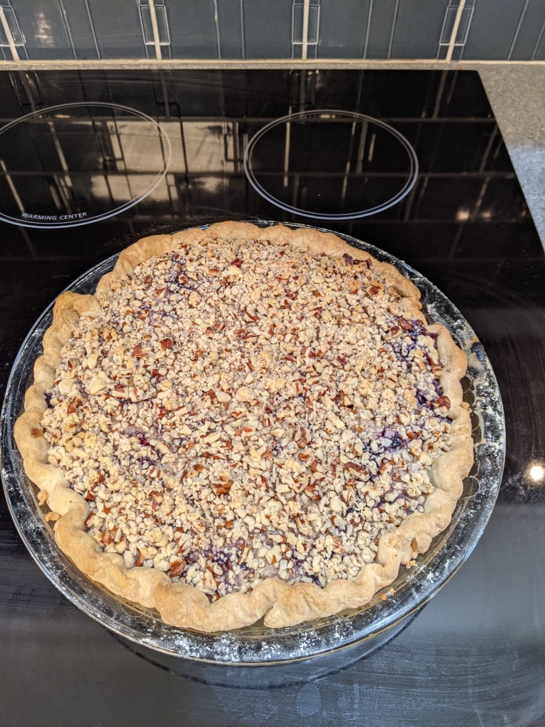 Return the pie to the oven and bake for 10 to 15 minutes longer until the filling is cooked through and the topping is golden brown.