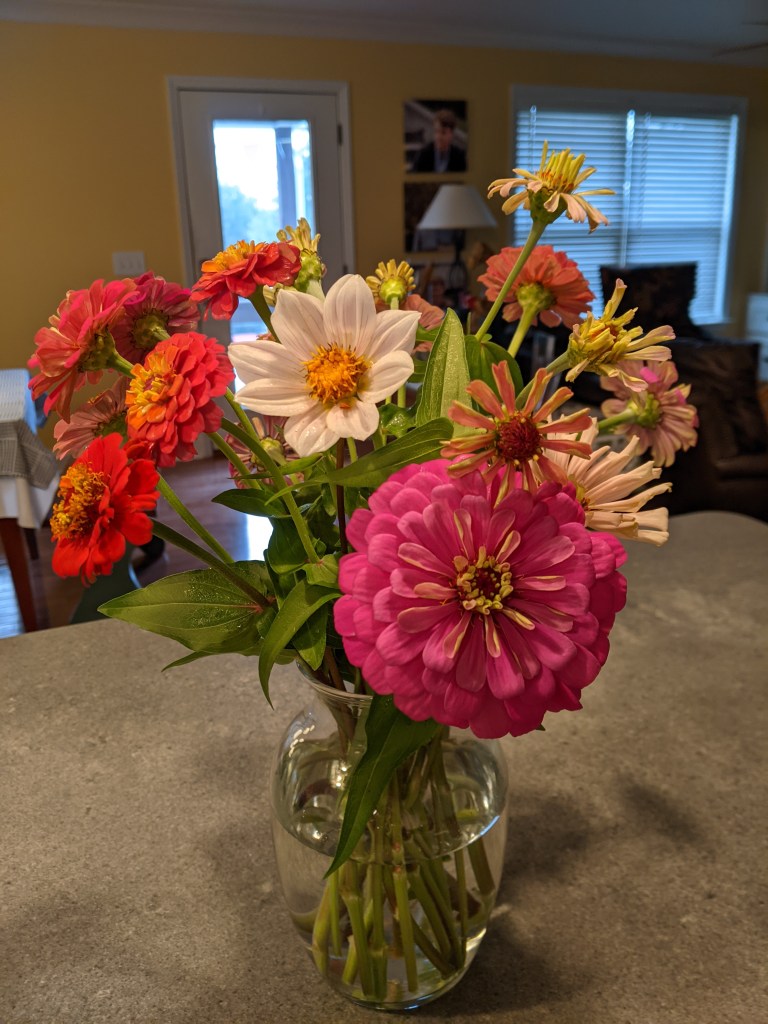 My dahlias were absolutely gorgeous at the beginning of the summer, but now they are DONE. My zinnias are starting to bloom more prolifically and a curve ball that I discovered last year was flowers from my hostas. Most people only think of hostas for their foliage, but the flowers can be beautiful as well and this particular variety smells nice, which is not surprising since they are plantain lilies.