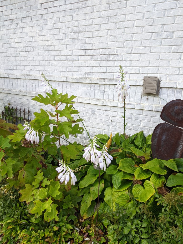 The perennial bed on the north side of the house looks pretty good still. The only things blooming are the hostas, but they have really put on a show.