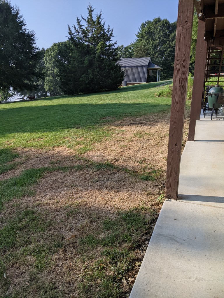 When the weather gets really hot and humid here we have a big problem with fungus in the yard. We treated it, but it was too late for right here. I have already purchased the grass seed for overseeding the lawn next month.