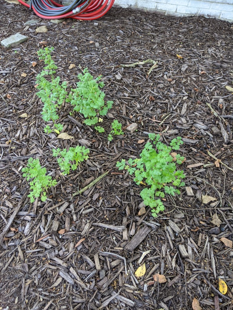 I had some cilantro seeds from last year, so I sprinkled those too. I need to use it quick because it bolts so fast.