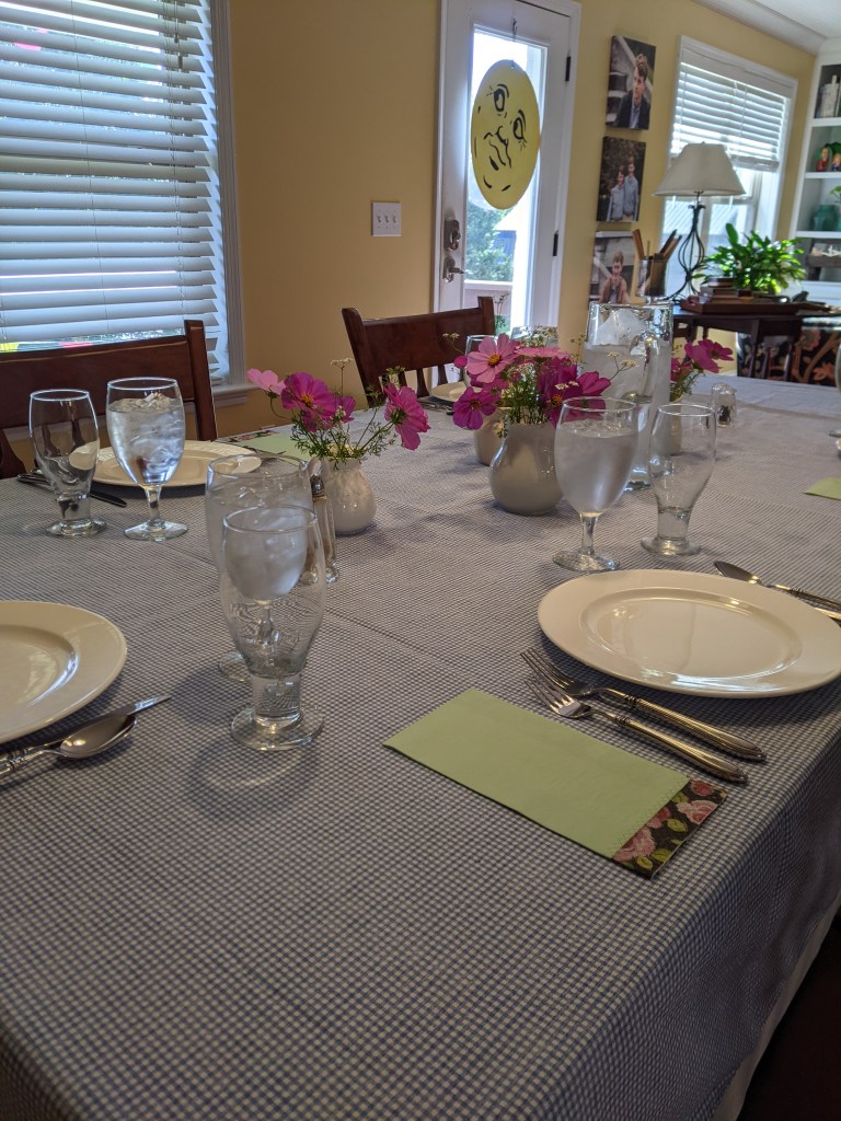 My brother and nephew are in the states for a couple of weeks on a road trip and they stopped by for lunch on their southern swing. It’s the last of the cutting garden–pink cosmos and coriander flowers. Looks pretty spring-like for the middle of October, but that’s what was blooming.