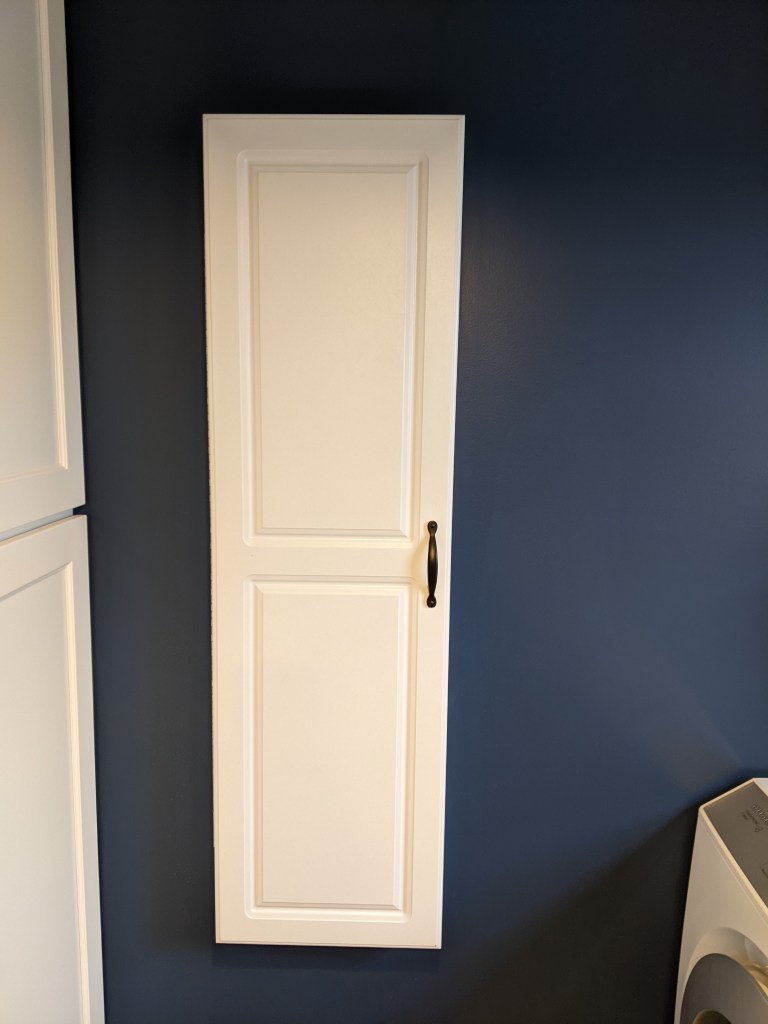I hate ironing boards because I hate ironing (obviously), but also because they are a storage nightmare–always in the way. When we were planning this renovation, we added a built in storage cabinet for the iron and ironing. It is so handy when I do reluctantly have to iron, but it is completely out of the way the rest of the time.