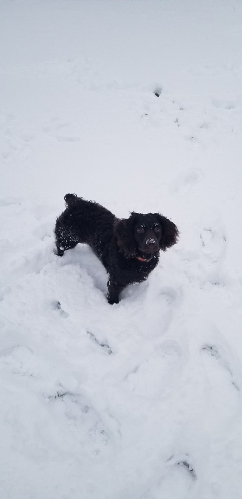 I’ll be honest, I would have been a lot more excited about 3″ of snow a month ago, but we have a family member with an entirely different opinion.