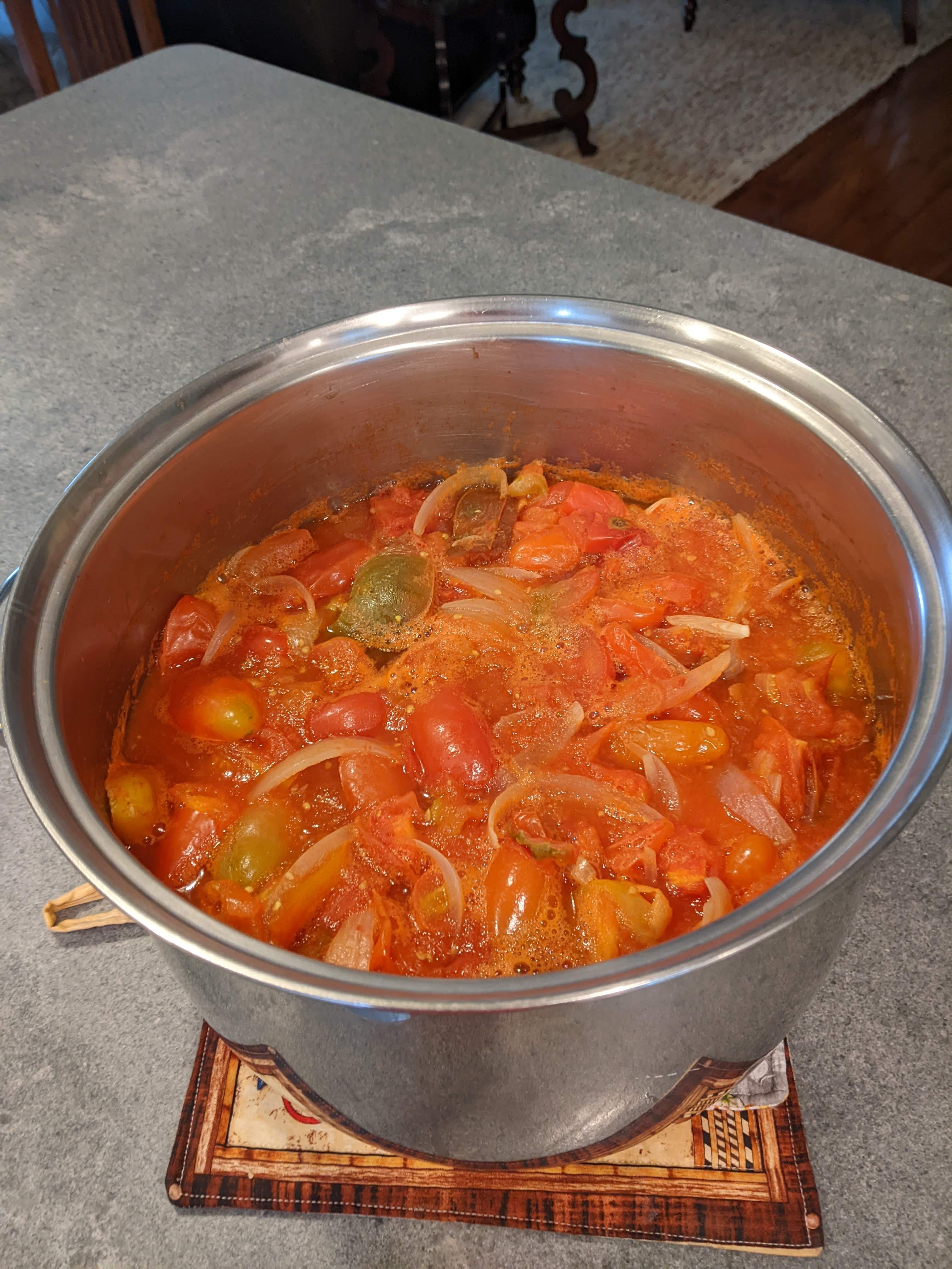 Today, I cooked another huge batch of tomatoes and onions to finish the recipe.