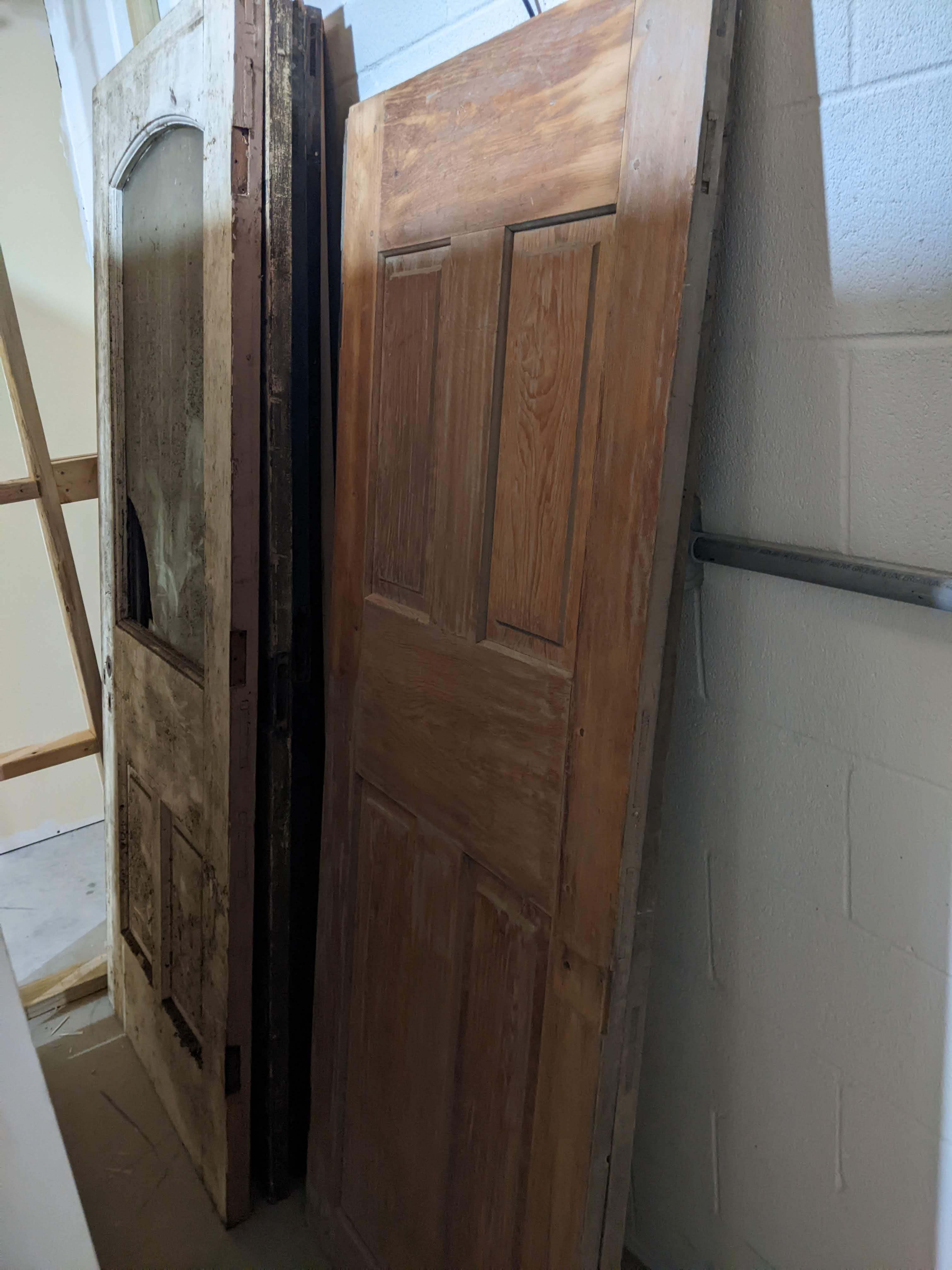 These are the original exterior doors from the 1800’s farm house that they replaced with something else. We will frost the glass on these so you can’t see in. We are just going to clean these doors, because we don’t want them to look new. These two doors are the only ones that came with door jambs. My husband had to build the ones for the closet, and will have to build jambs for all the rest as well.