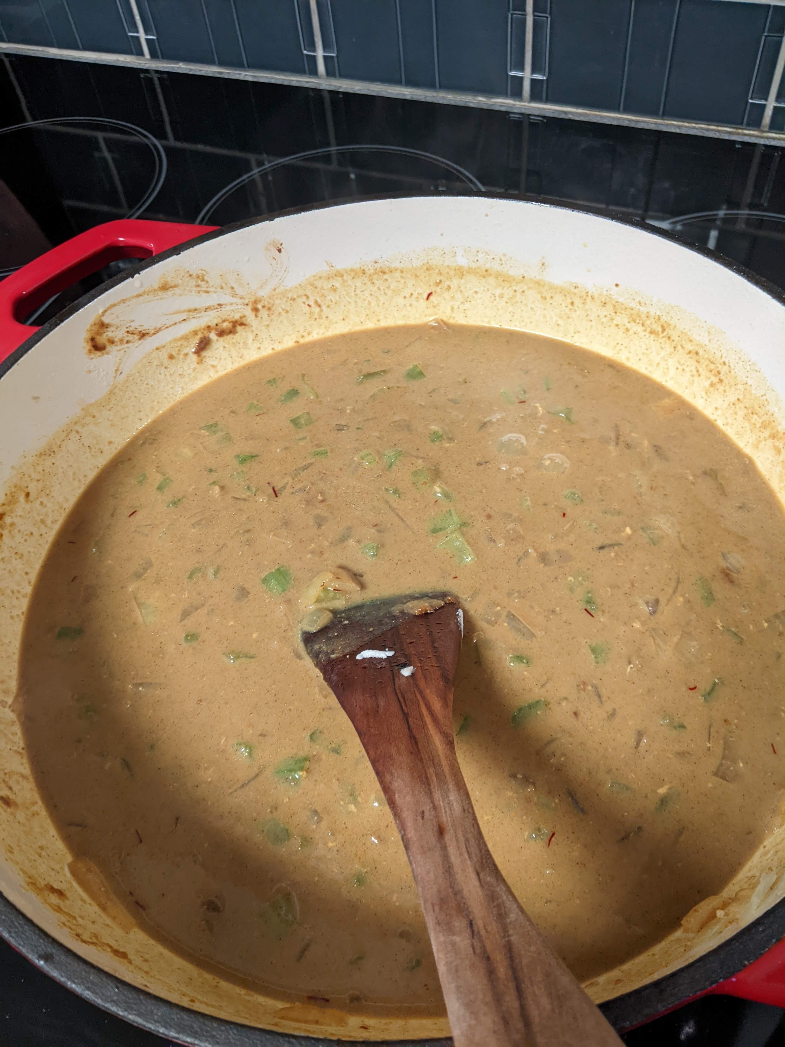 Add curry powder, cinnamon, ginger, and garlic and cook until fragrant.