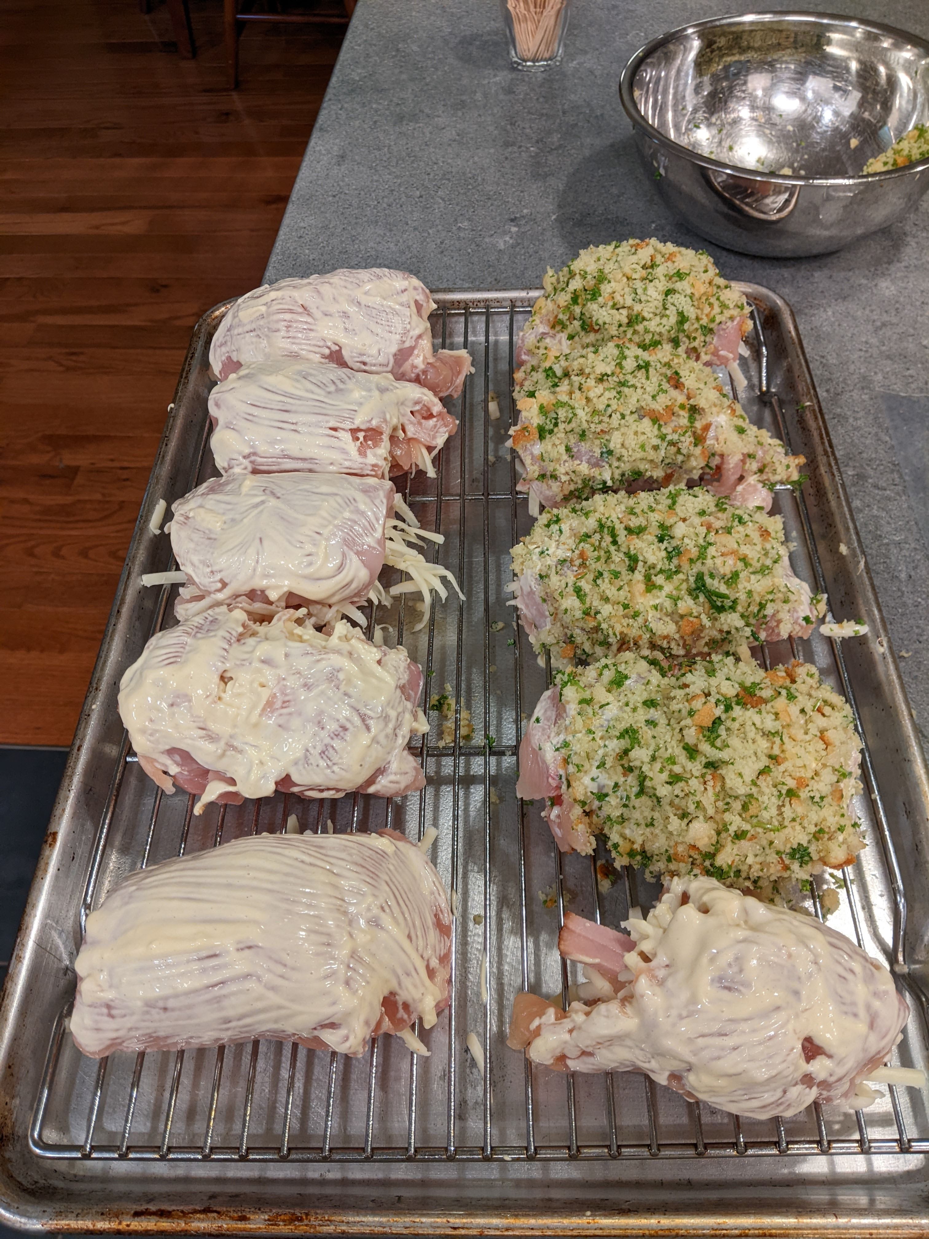 5 large chicken breasts, butterflied and pounded thin