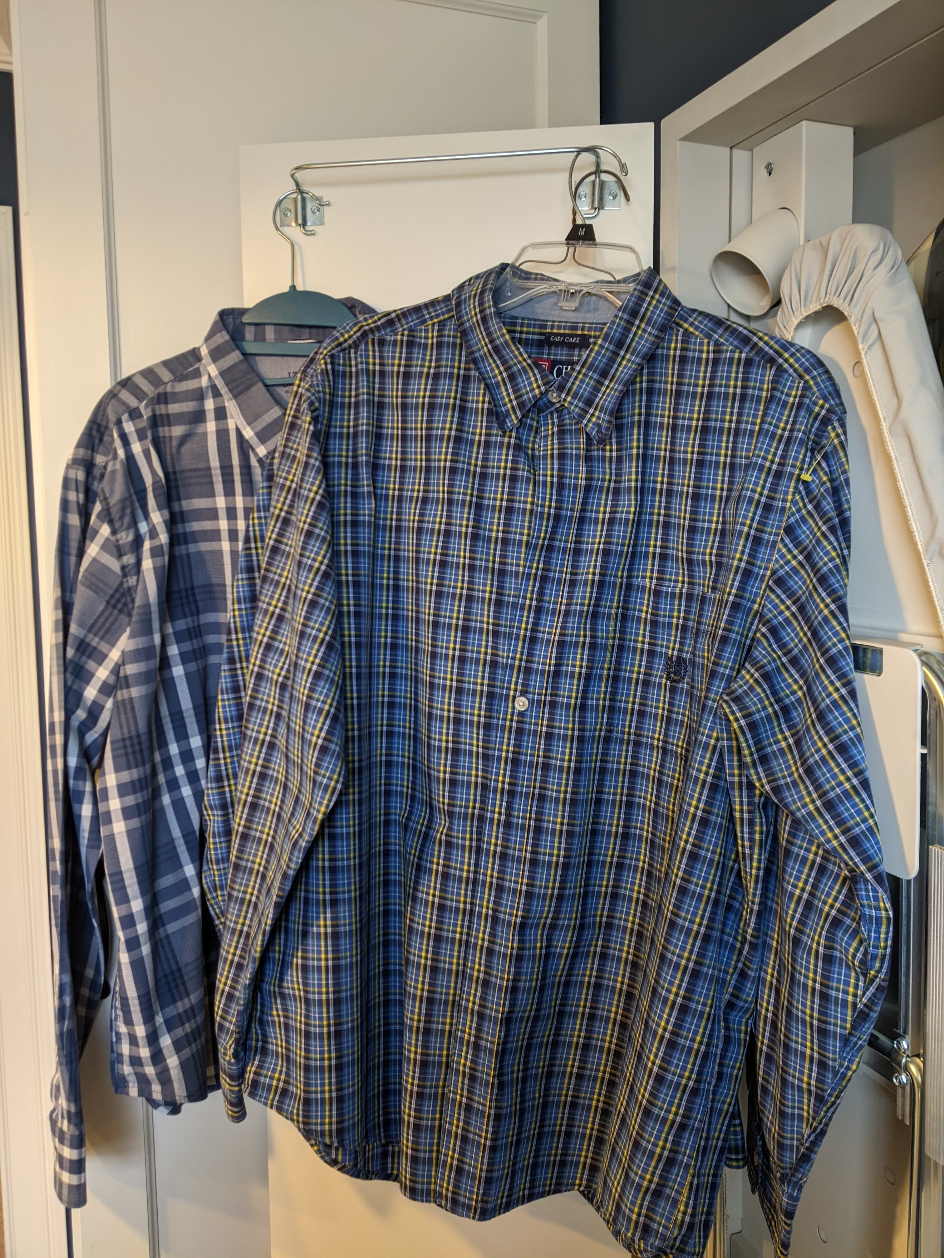 My mother has been making quilts for everyone in the family during the pandemic and beyond. I asked her if she wanted to make a quilt with me and she said, “Sure.” My idea was to buy men’s shirts at local thrift stores, especially ones that were stained or branded with an employer’s logo, and turn them into a patchwork quilt.