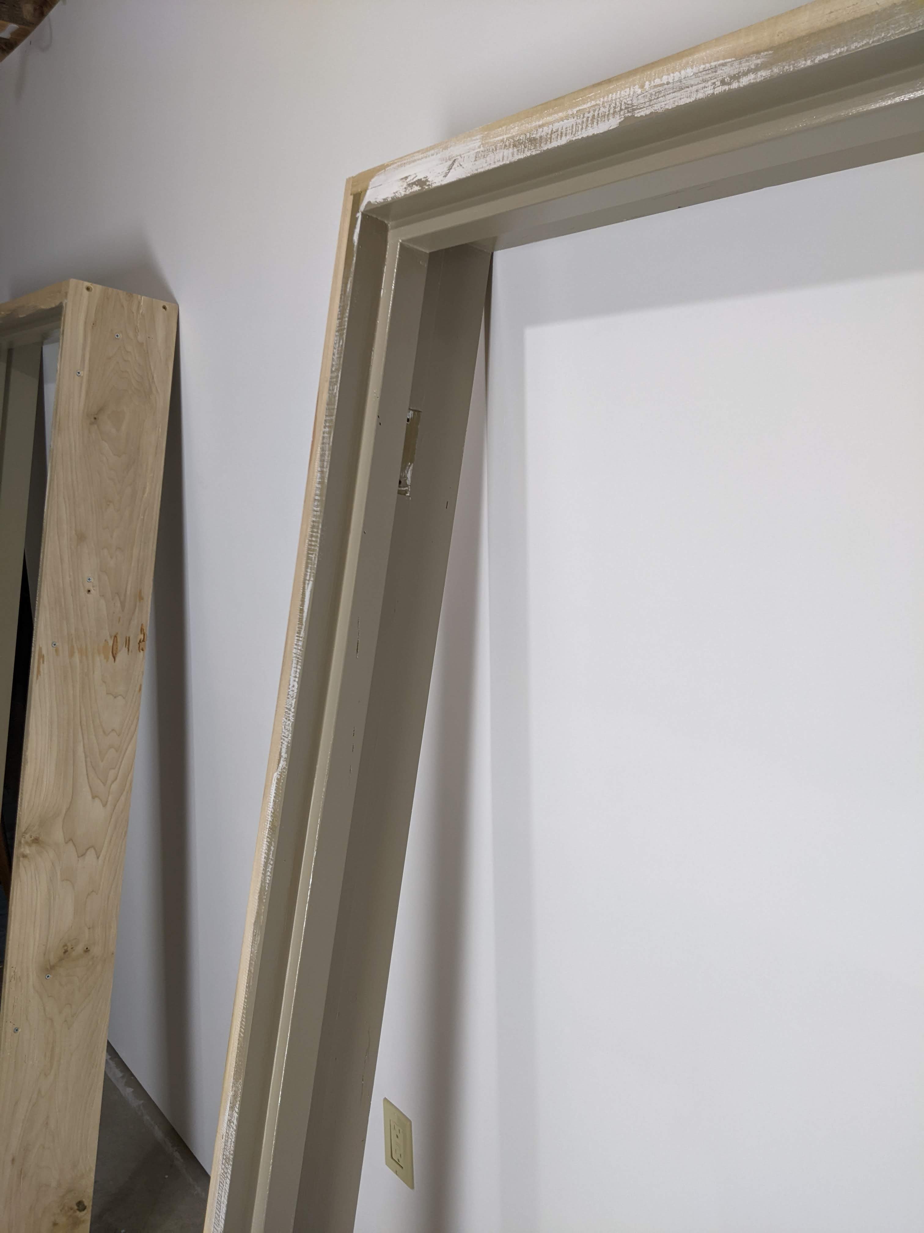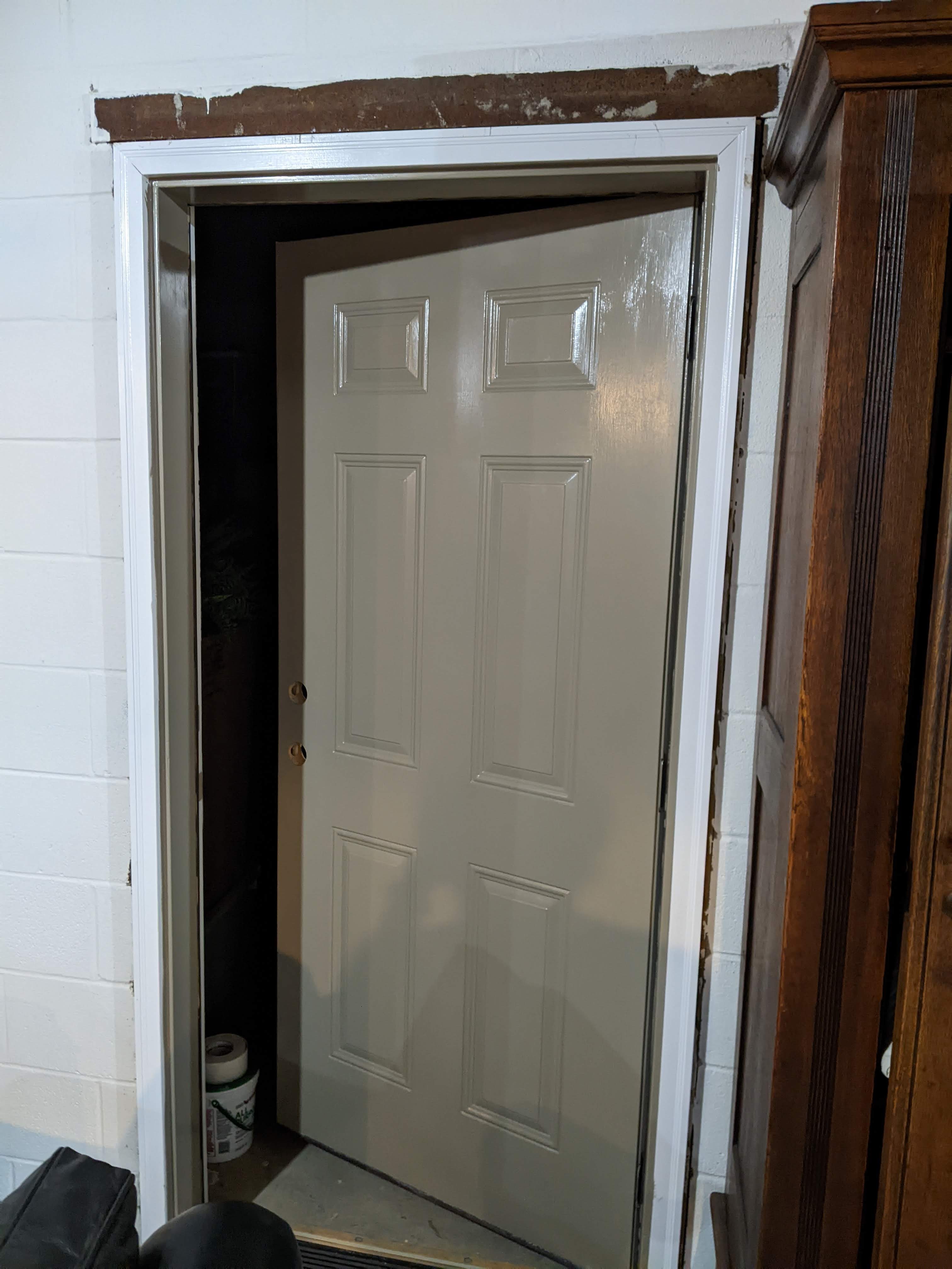 We picked out the trim color as I mentioned in my last post, and I have started painting door frames, a window frame, and the two existing metal doors that we are not planning to change out. This paint was a close out that I ended up getting for free and it is SO THICK that I have had to thin it with paint thinner pretty aggressively so that I can brush it on. I have also had to put it through a paint strainer to remove little crumbs of something, but I keep reminding myself that it was free, because otherwise I would be frustrated by this part of the process. Honestly, I have always had this problem with oil based paints and wish that I had been straining it all along, because the finish is so much better.