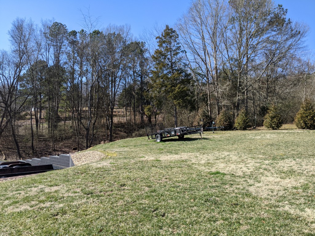 In the spring of 2021, my husband and I decided to plant forsythia along the retaining wall between our property and our neighbor. The wall is pretty tall, and I was always nervous mowing along it.