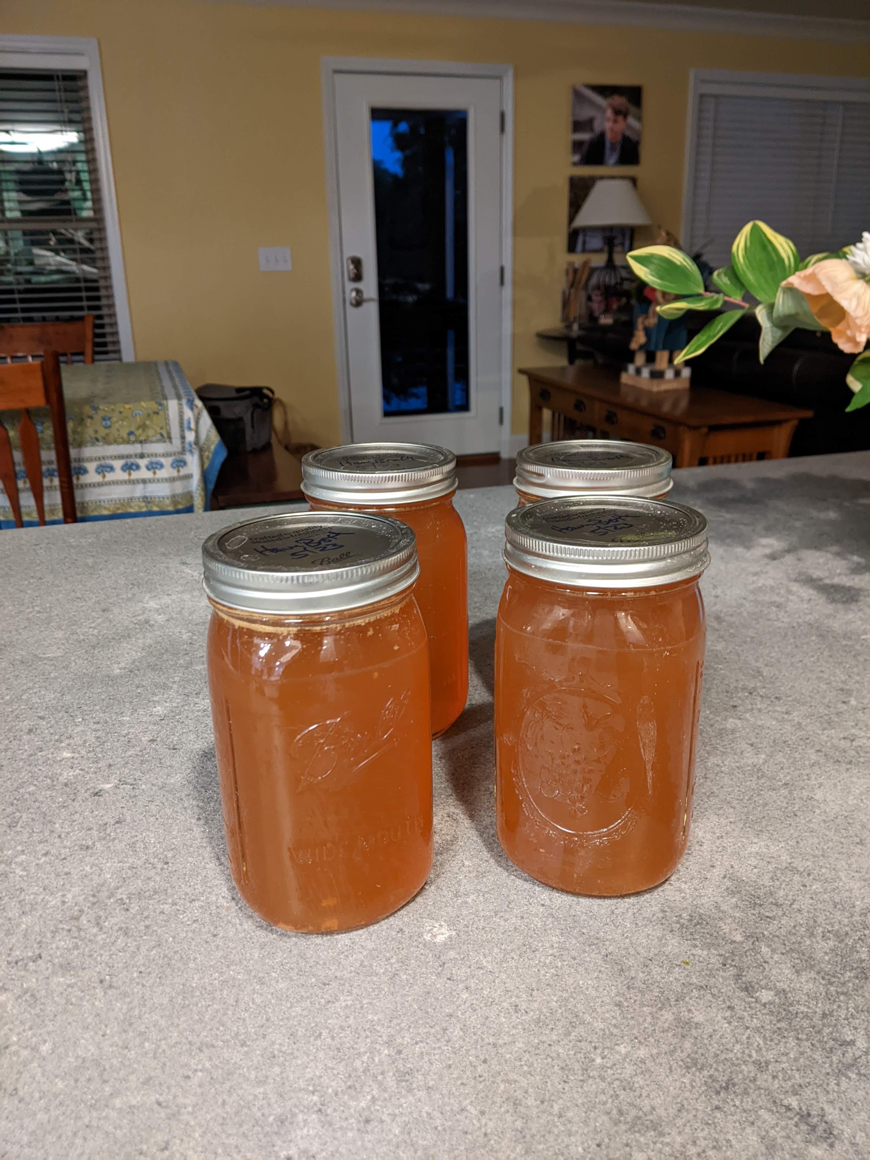 Once my broth, jars and canner were up to temperature, I filled my jars and added lids and rings and put them in the canner as I got each of them finished.