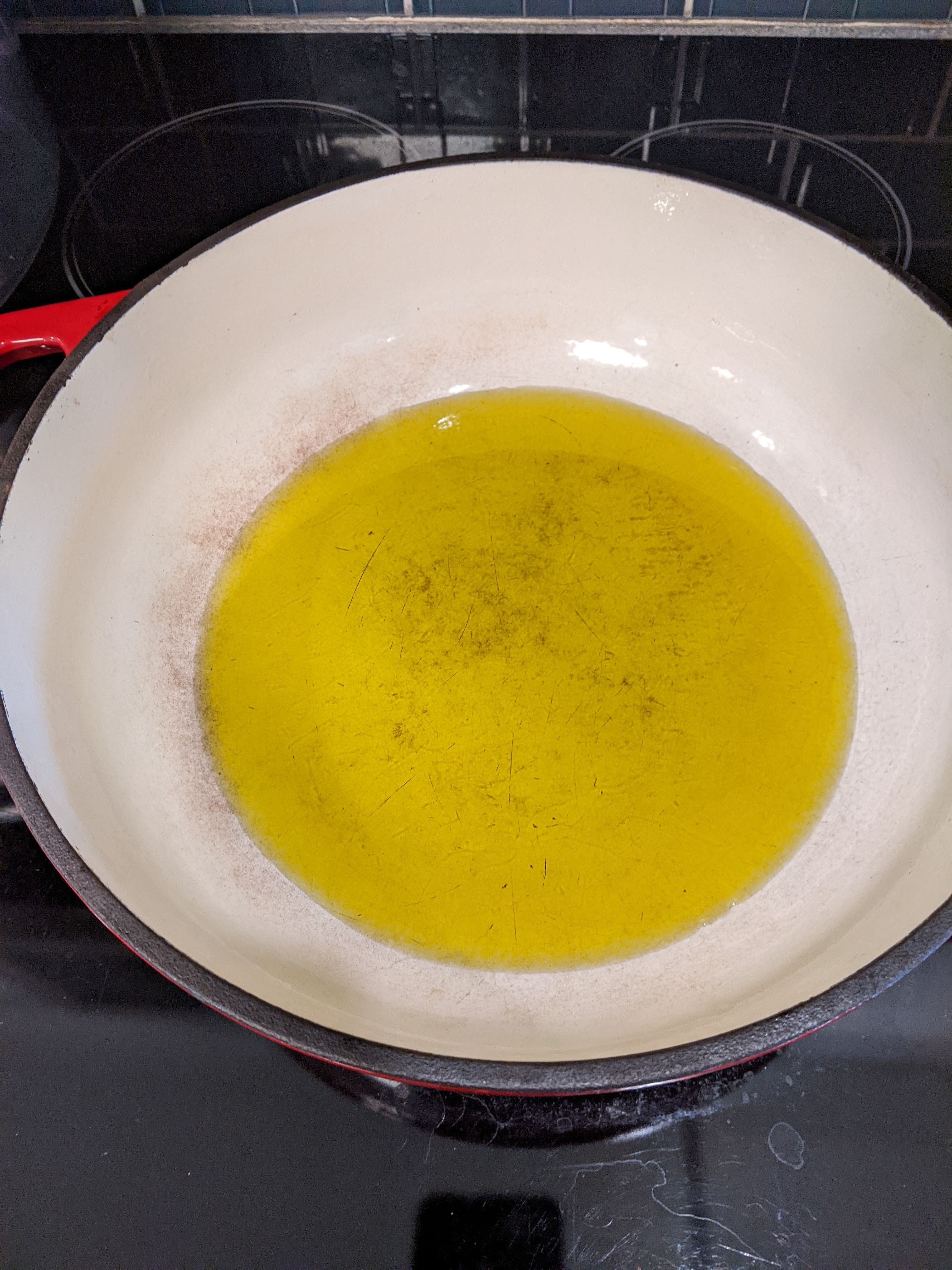 By this time, my squash had drained long enough so I got my pan hot and put about 3/4″ of olive oil in it.