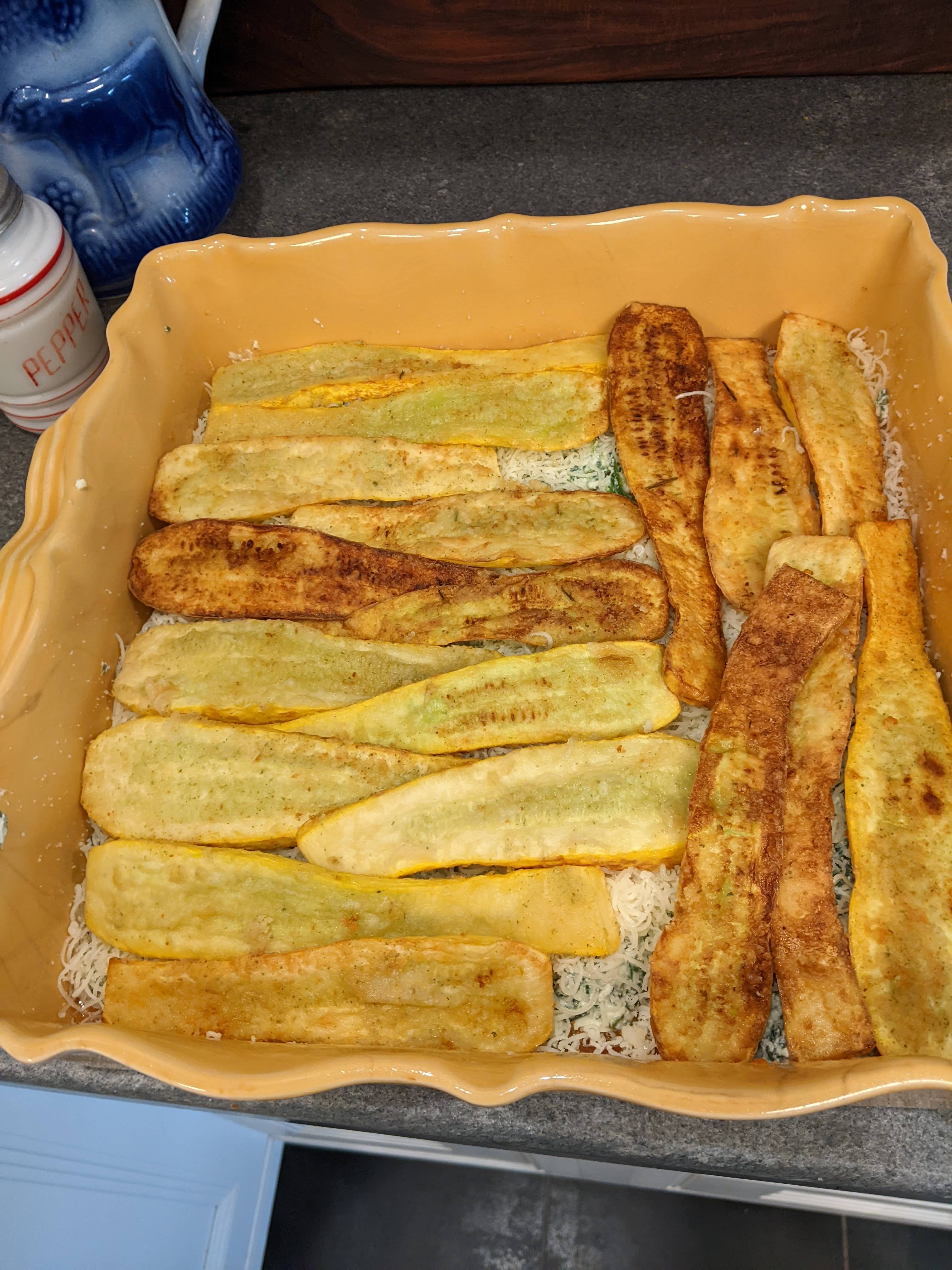 I repeated the filling and mozzarella cheese and then topped it with the fried squash planks.