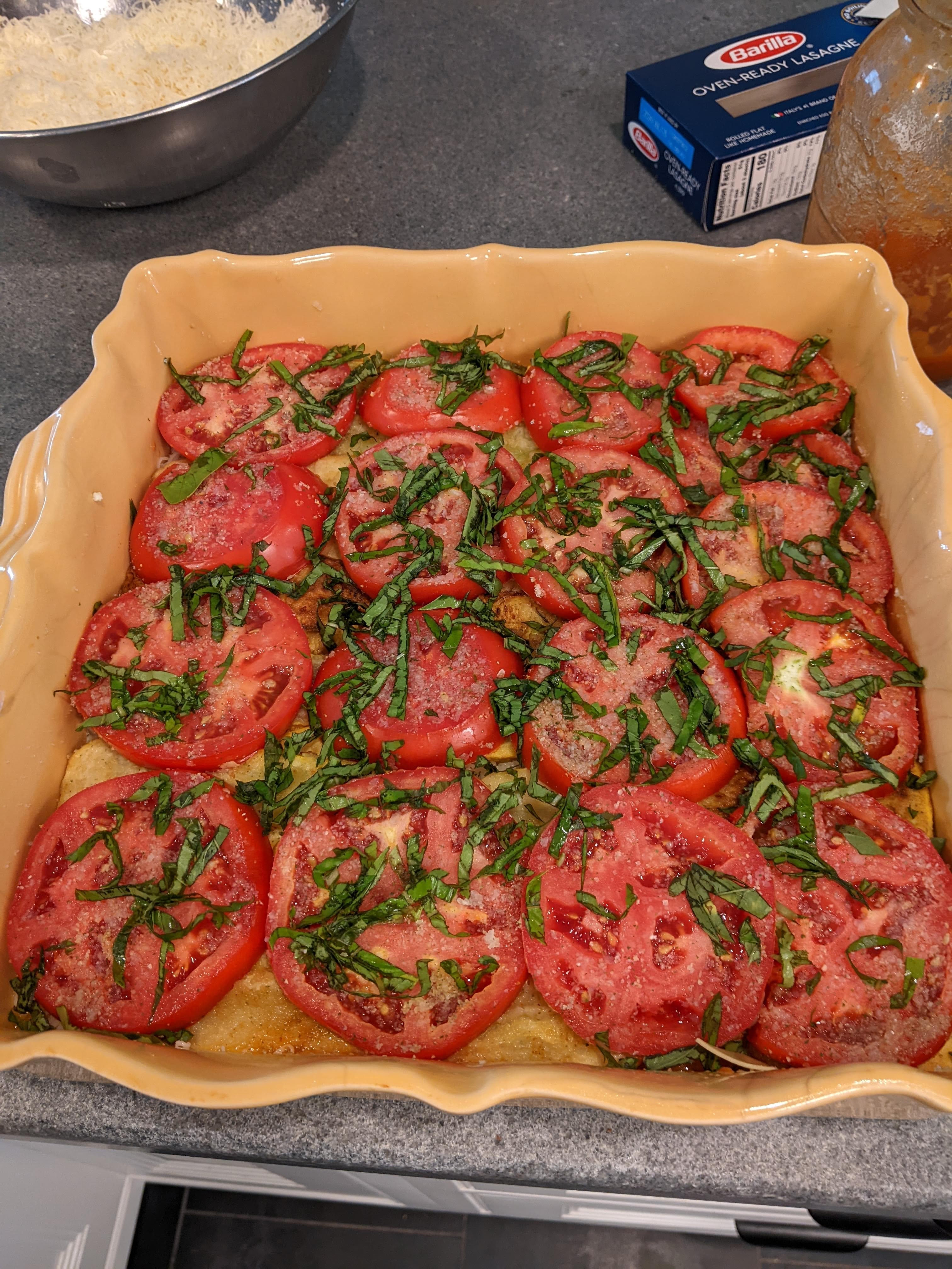 I topped that with the sliced tomatoes and fresh basil.
