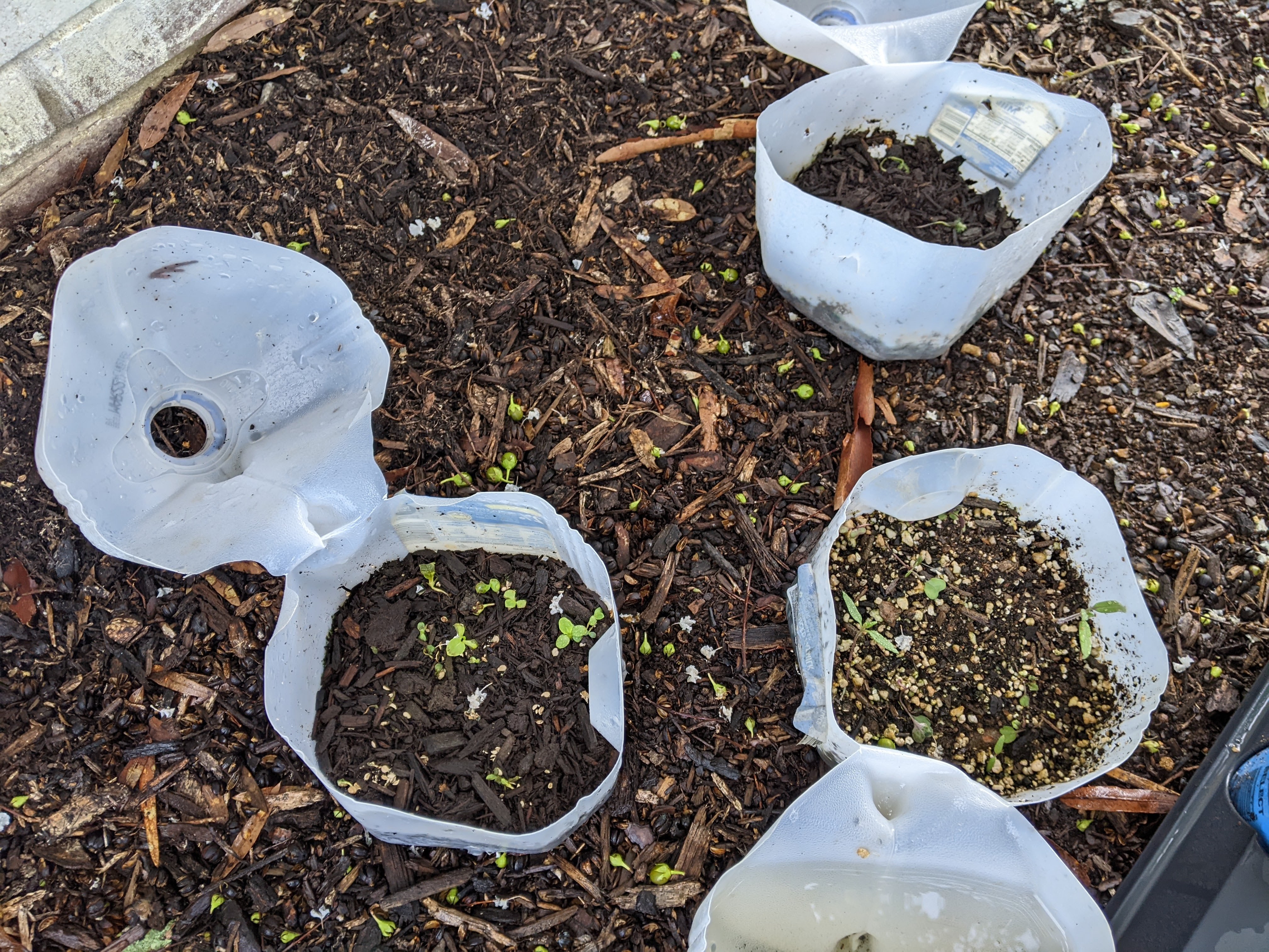 This morning I transplanted them into pots and also into a tray lined with newsprint.