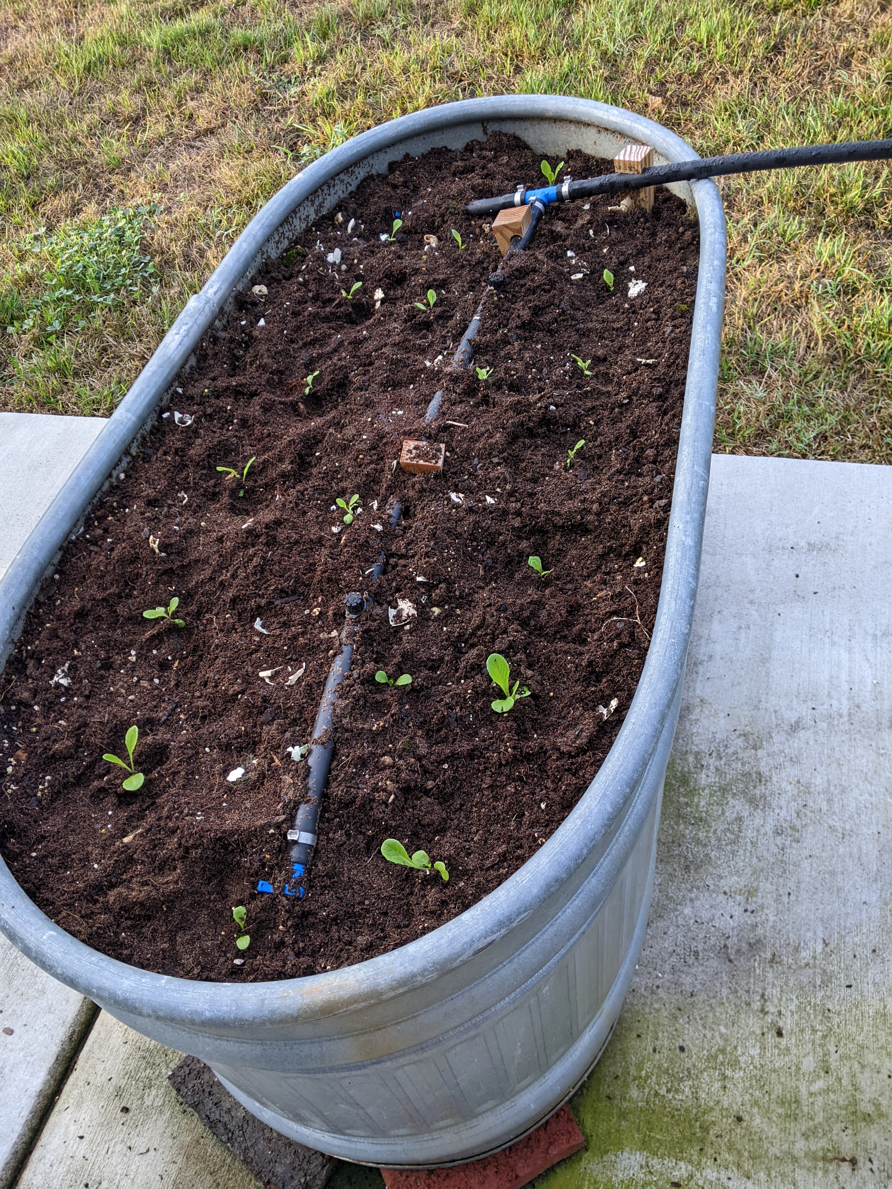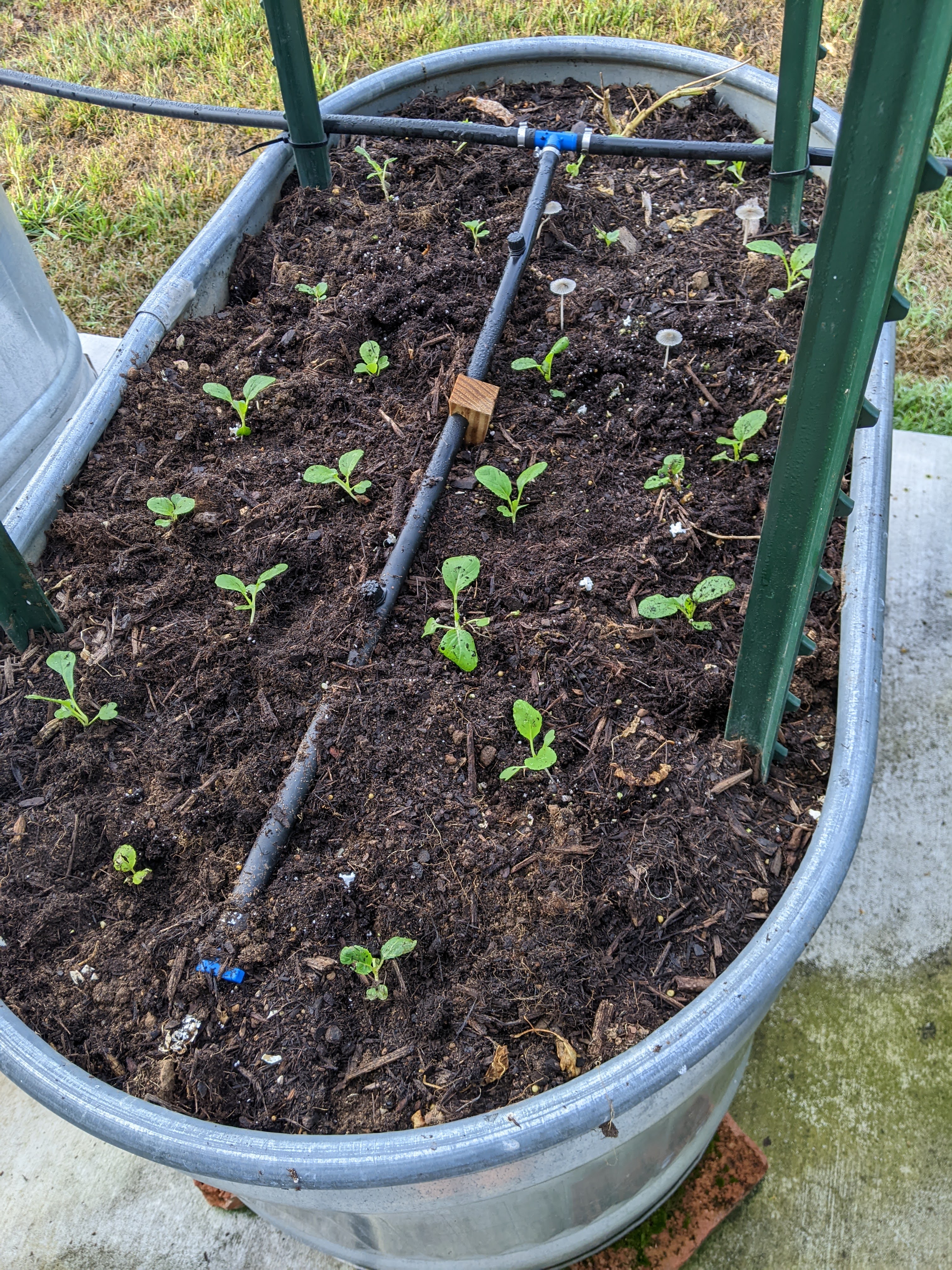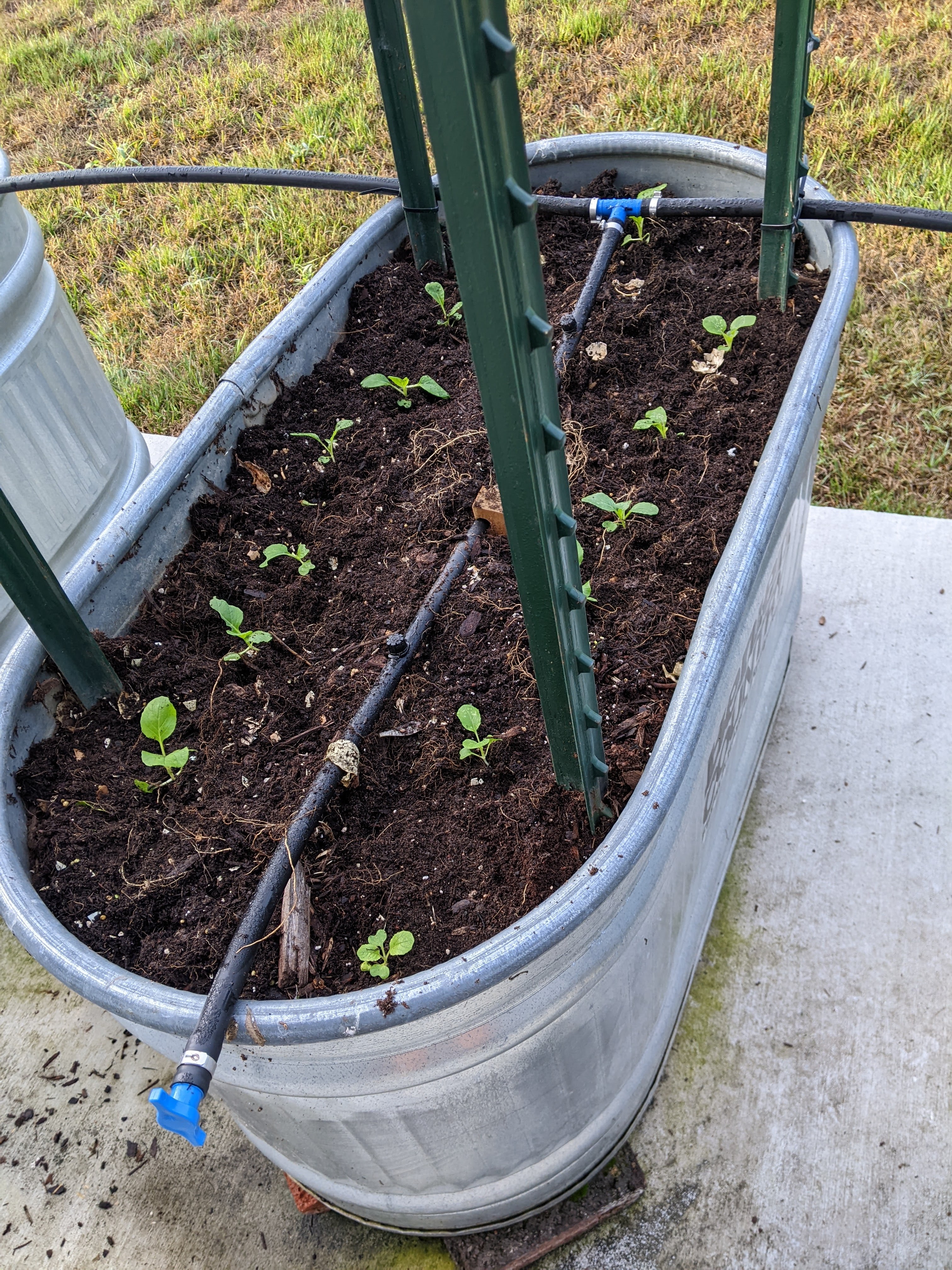 Anyway, I started baby bok choi from seeds and I had a lot of my romaine plants that were big enough to plant, so I put those in the stock tanks.