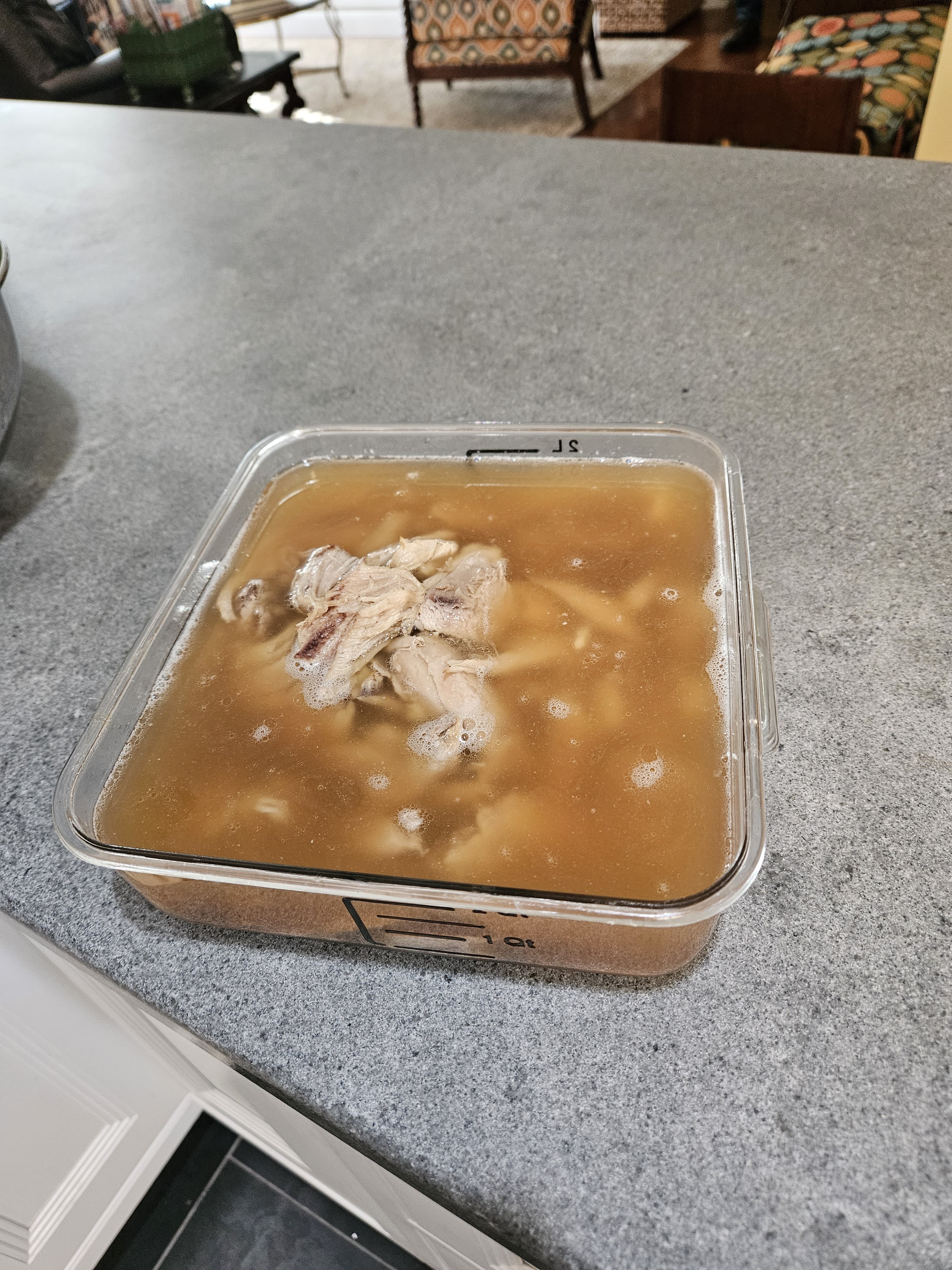I found cooked turkey in broth in the freezer (from when I canned turkey broth).