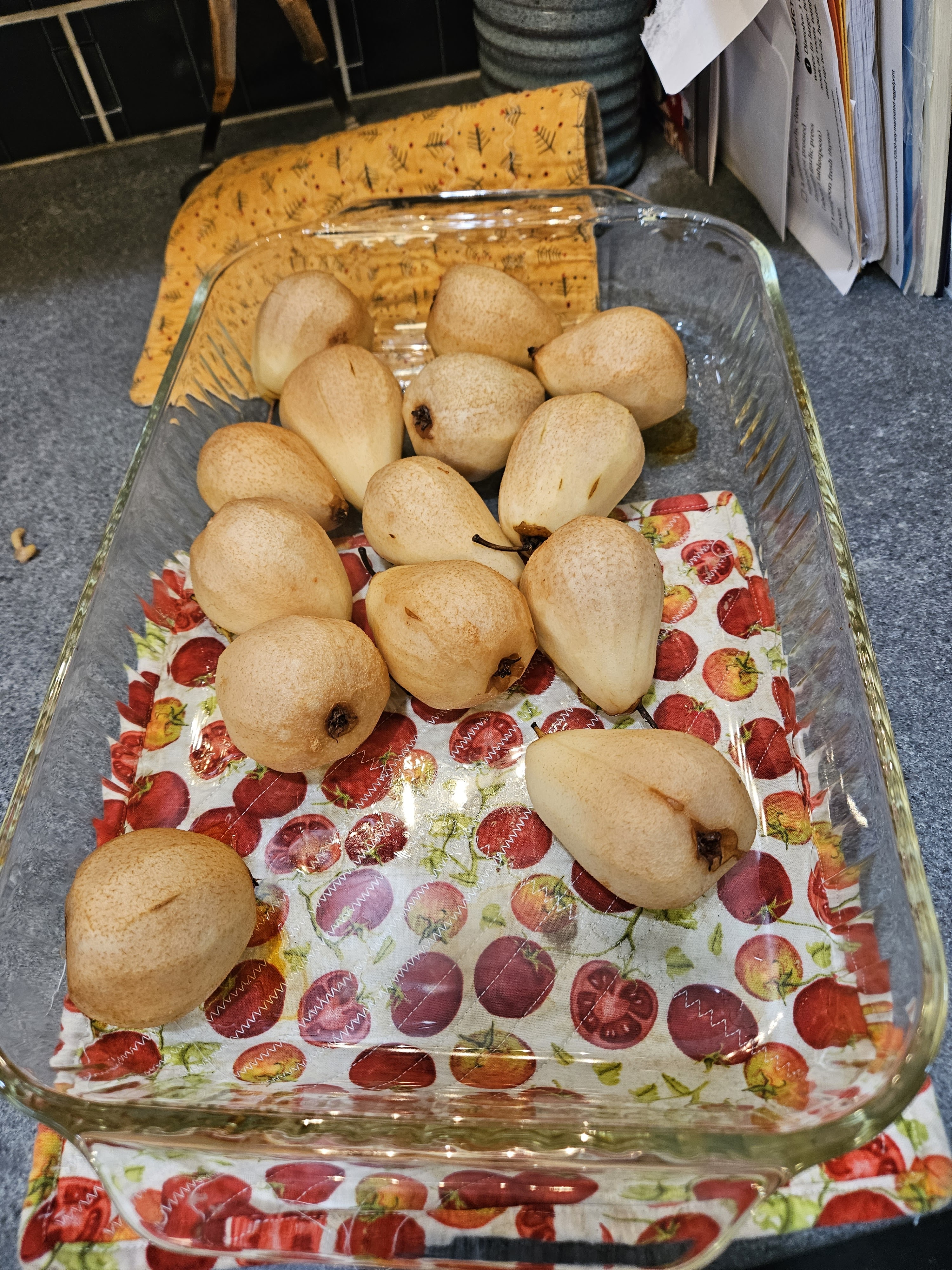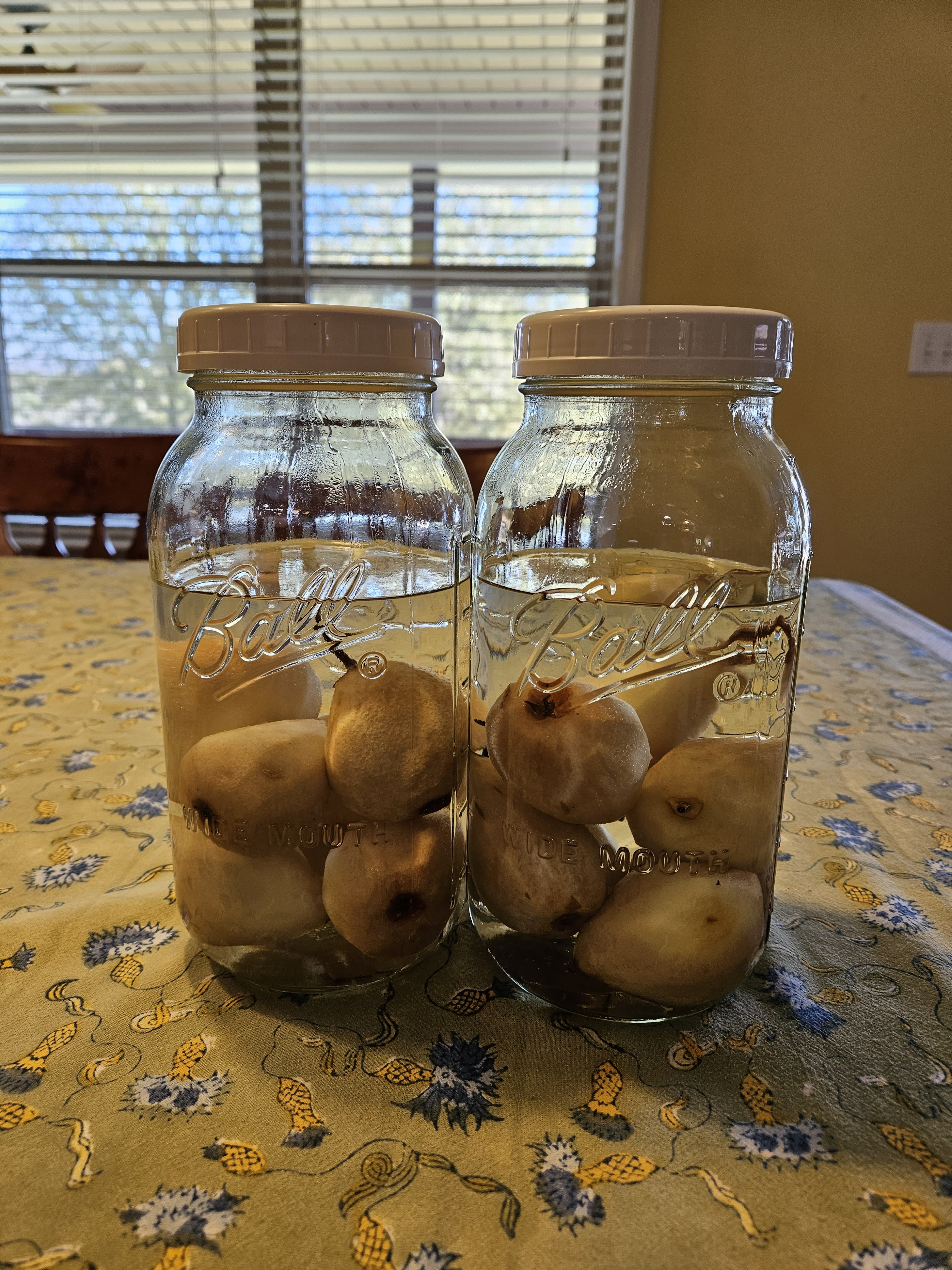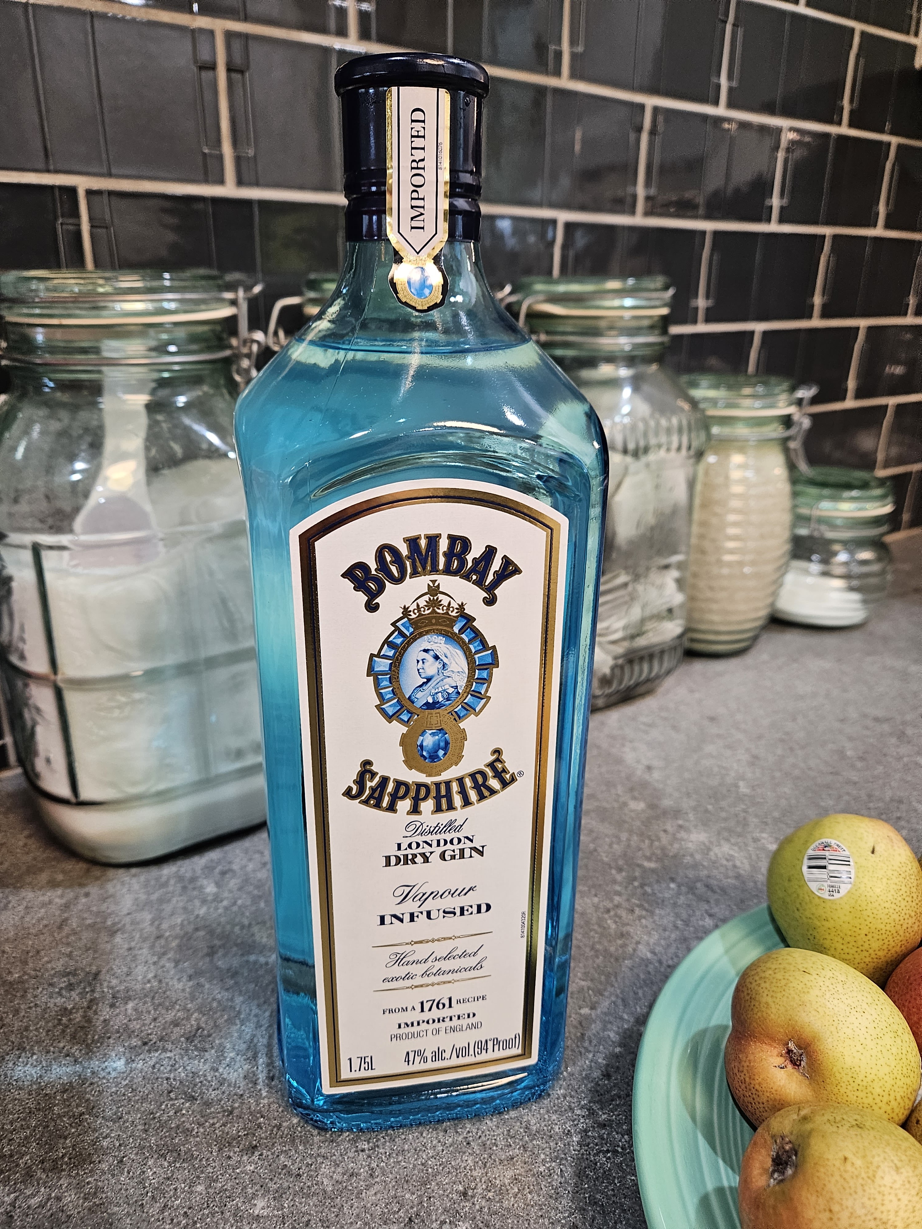 These will have to stay in the refrigerator for about a week. I will remove the pears and strain the gin into the bottle.