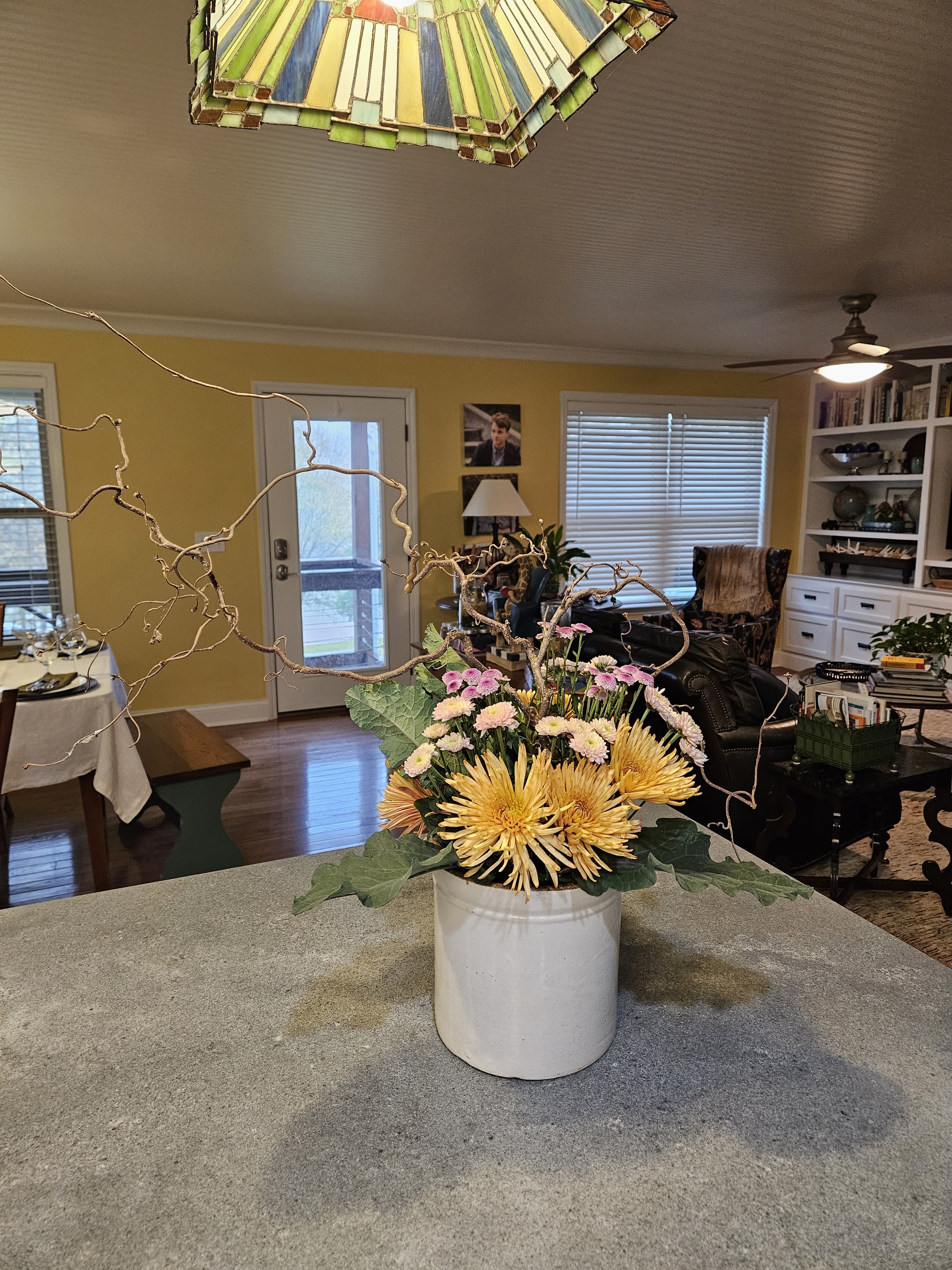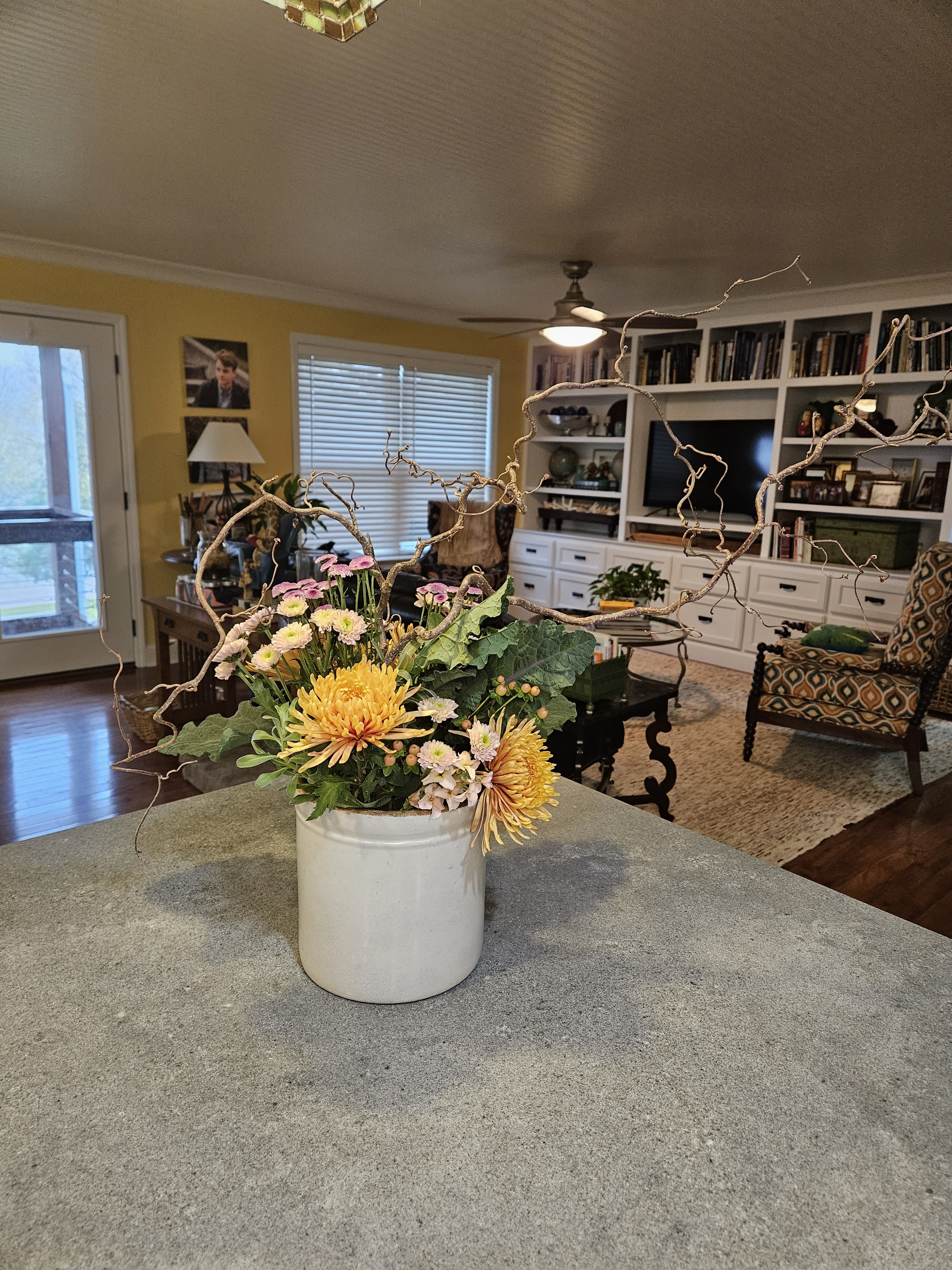 We aren’t having Thanksgiving dinner at our house, but my oldest and his girlfriend are coming in for the holiday/weekend, so I wanted to do some pretty flowers on the counter.