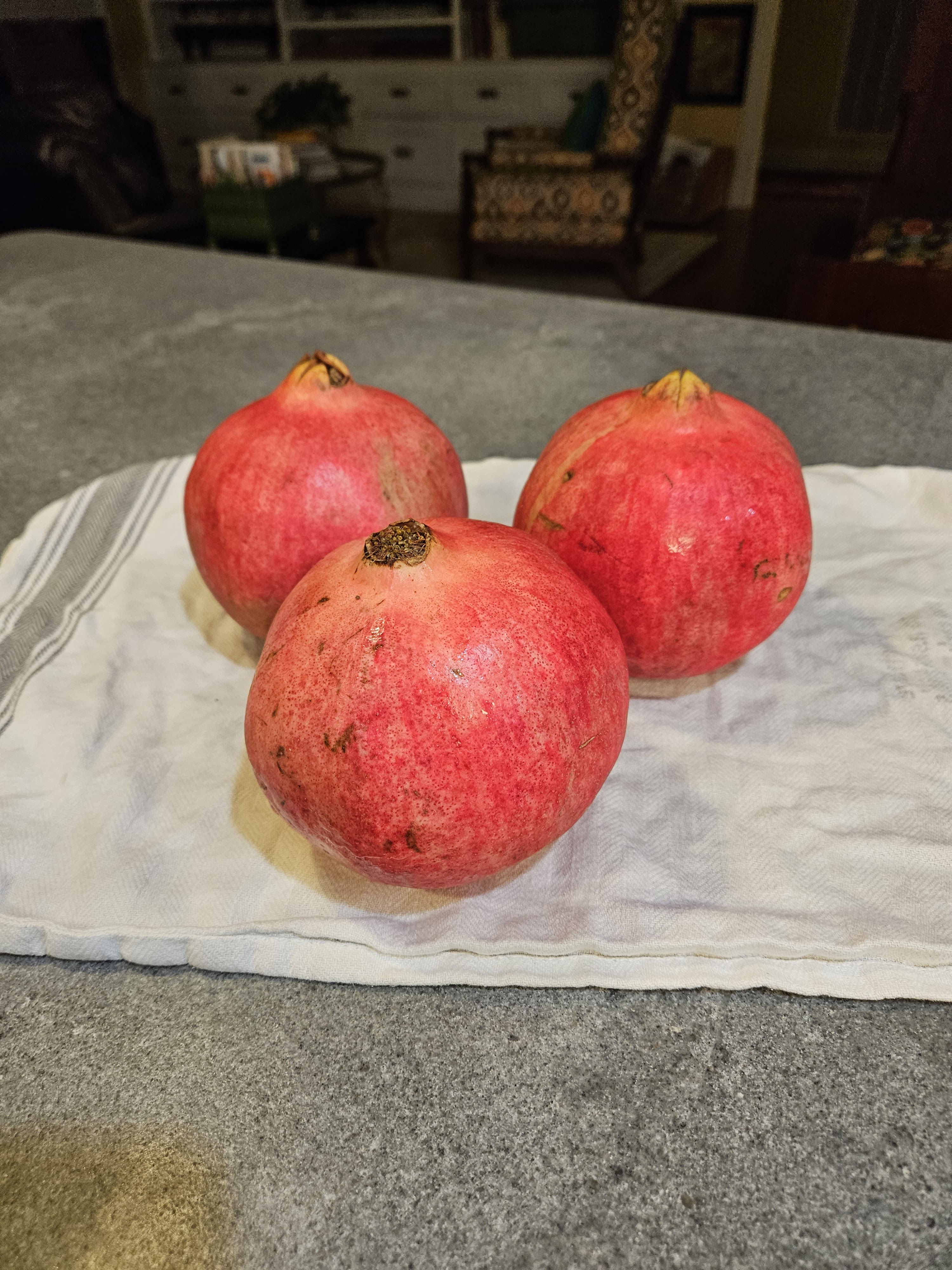 While I was in Atlanta recently, my neighbor and I went to Buford Highway Farmer’s Market (which is really a giant grocery store with the best selection of ingredients for all kinds of cuisines–especially Asian cuisines. They also have an unbelievable produce section. While I was browsing the produce, I found some HUGE pomegranates. Pomegranates are easy to find this time of year.