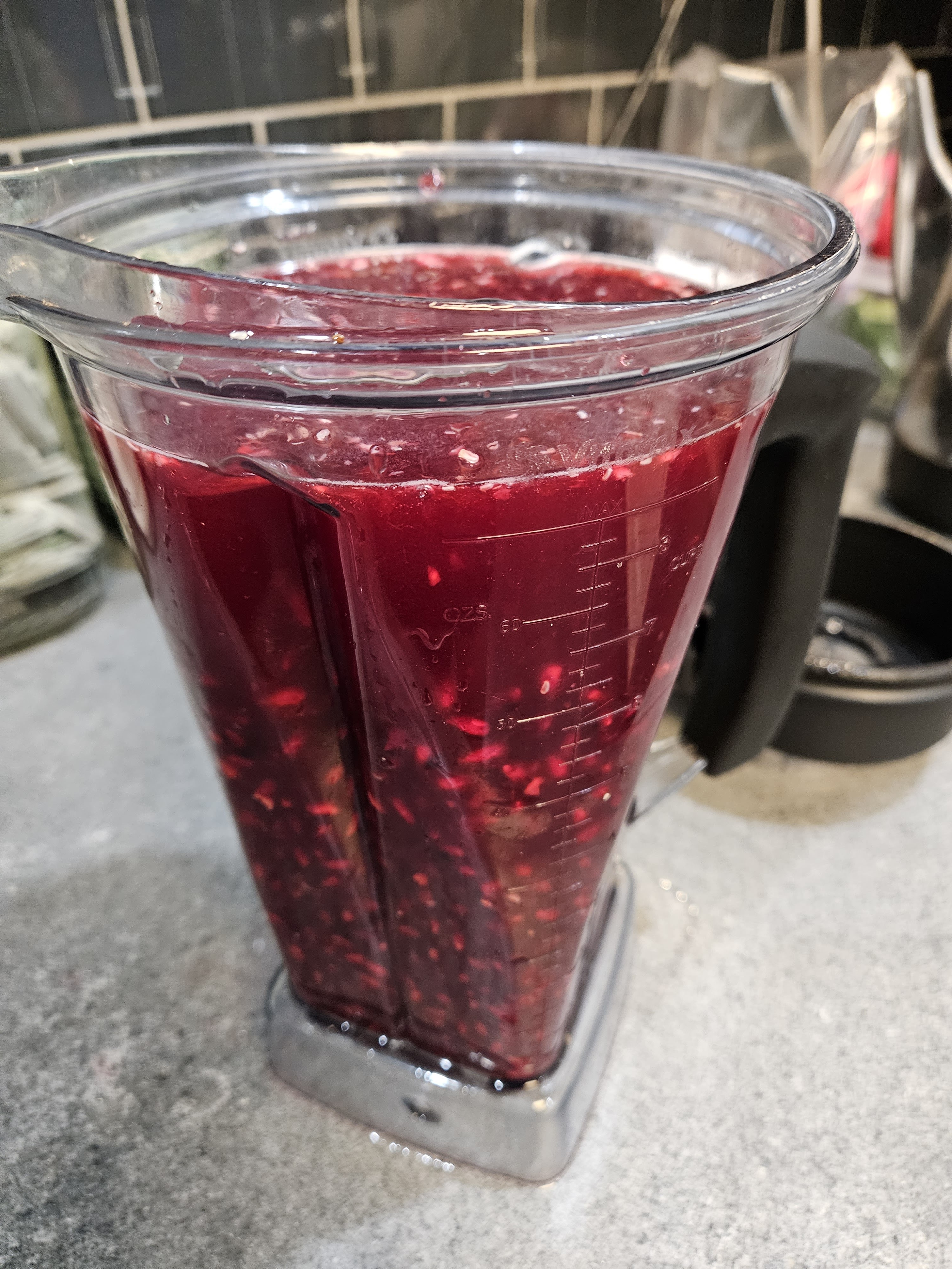 I poured the seeds and the water into the jar of a blender. I blended them on low speed until all of them were moving. You don’t want to chop up the seeds, just break the skins open so that the juice can be extracted.