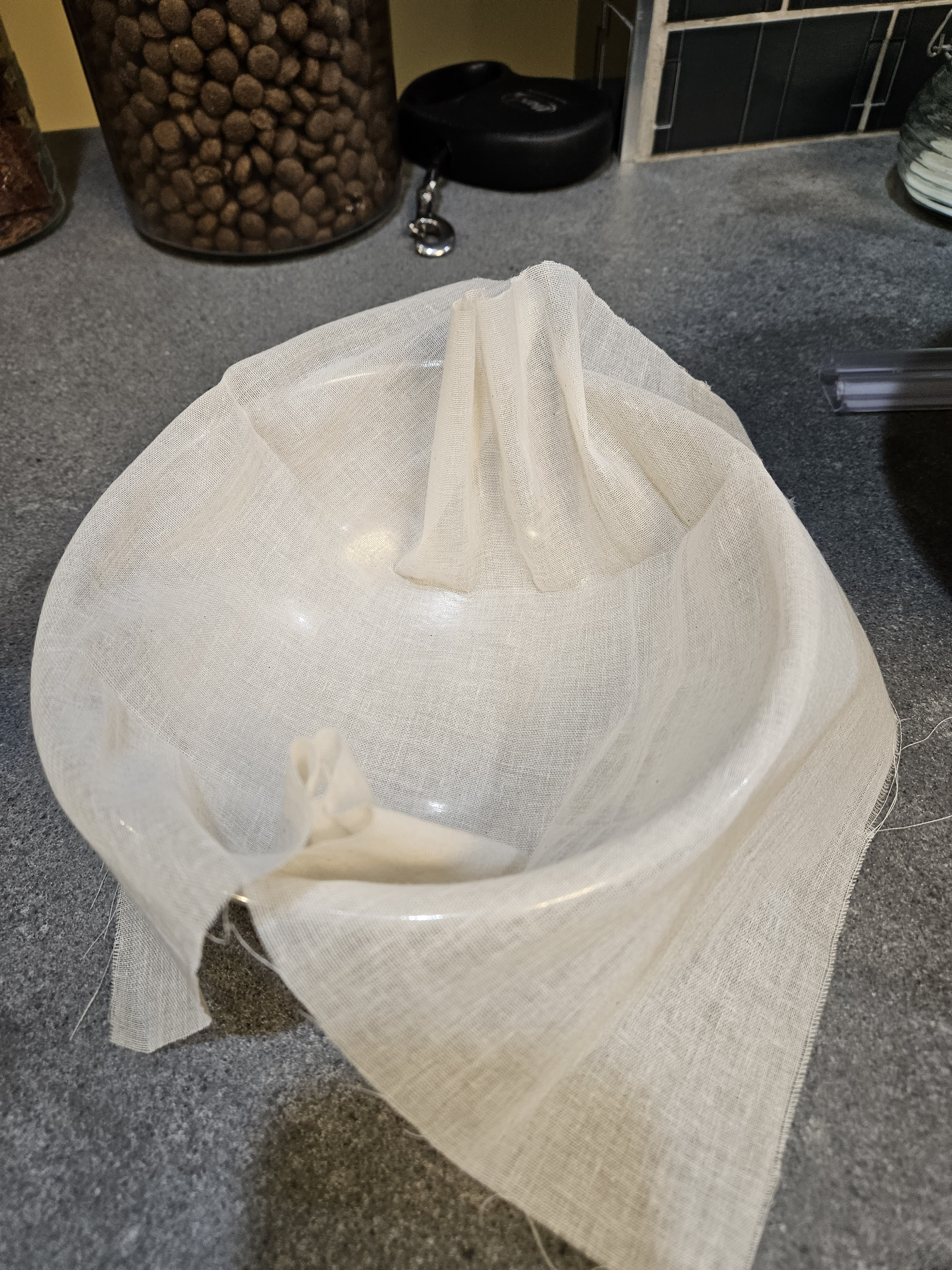 Then I put the pulp and seeds into a square of cheesecloth.