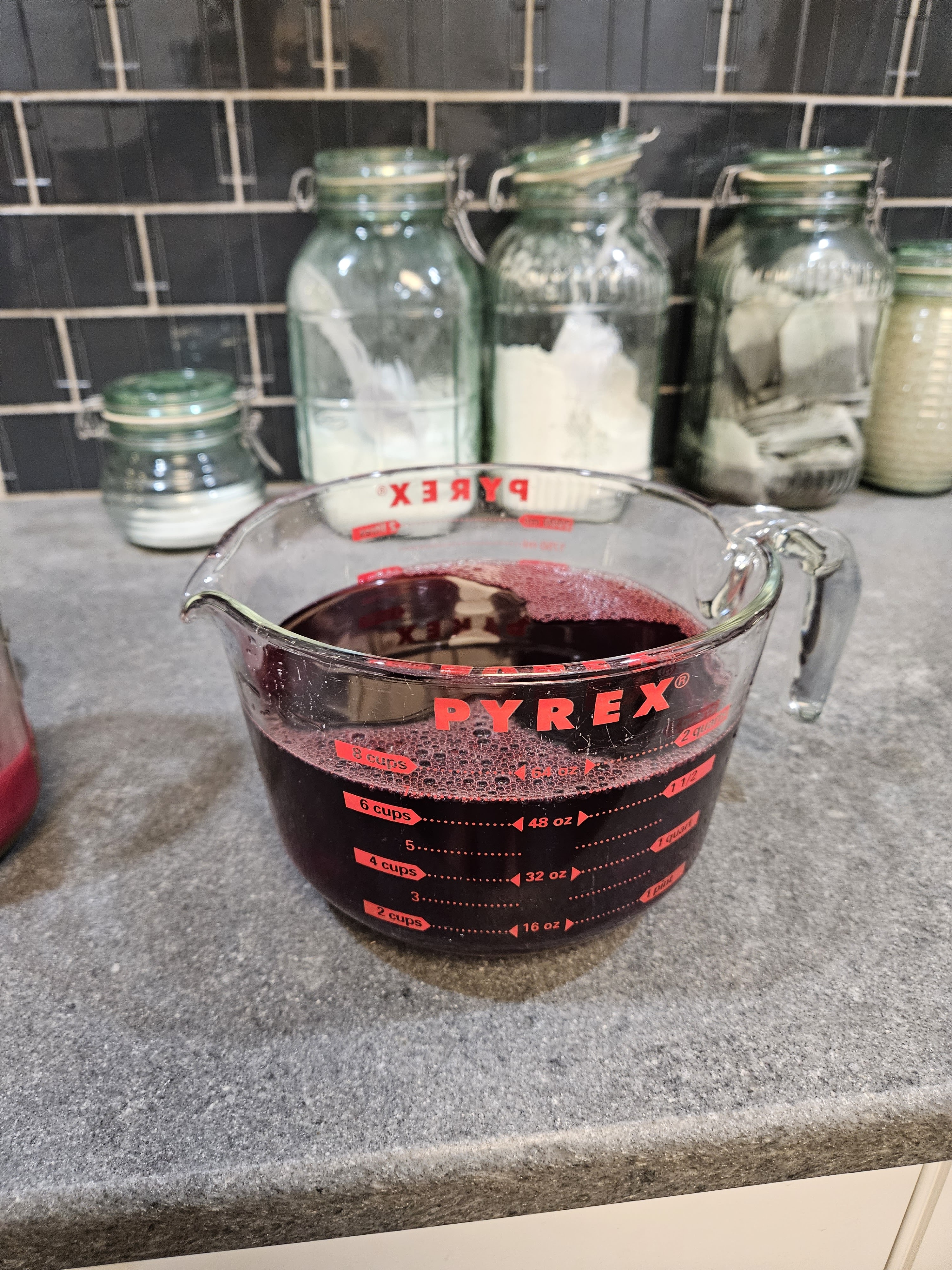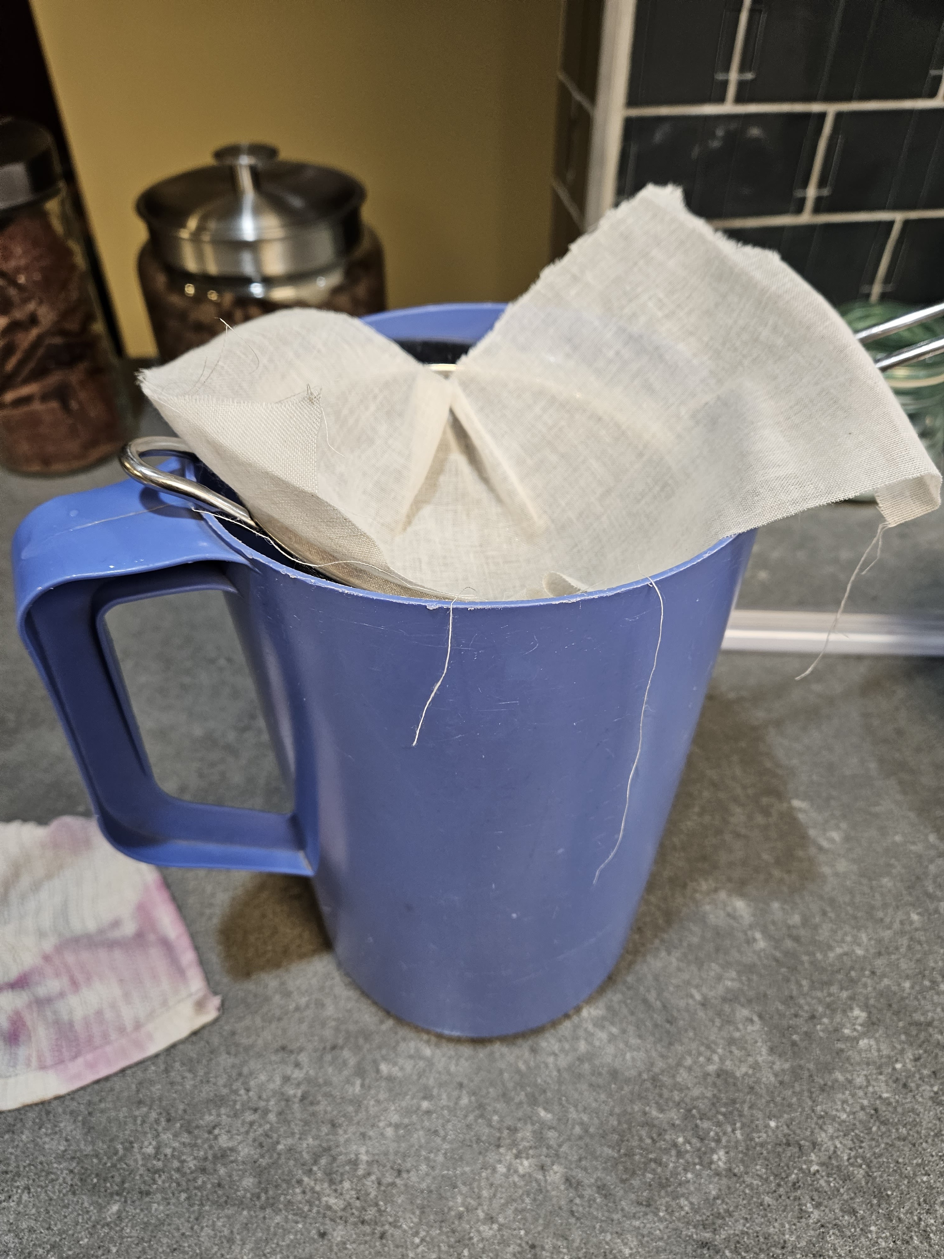 Then I poured it into a half gallon jar to let it sit overnight so that the solids could settle out. This is one of my favorite tricks.