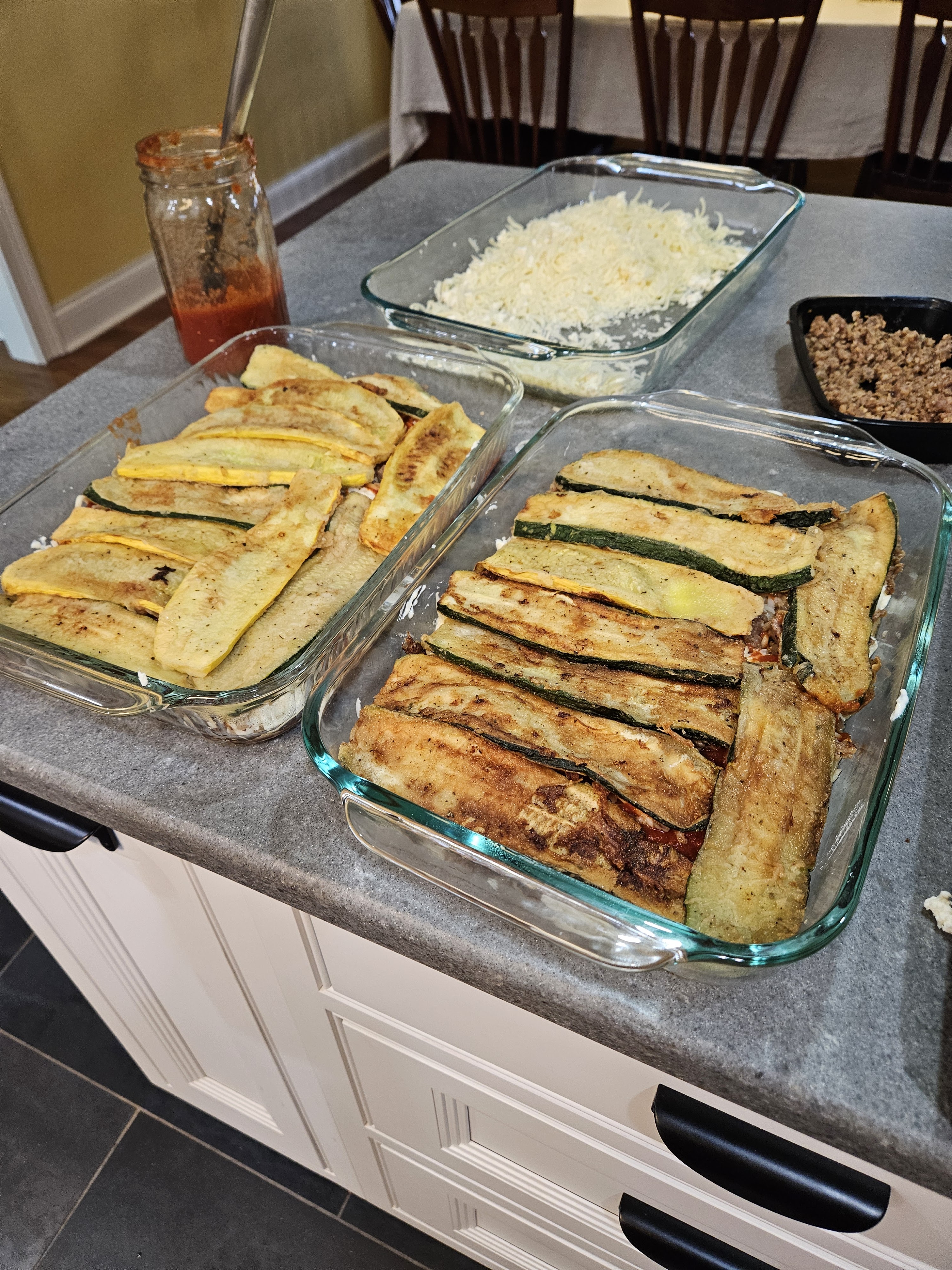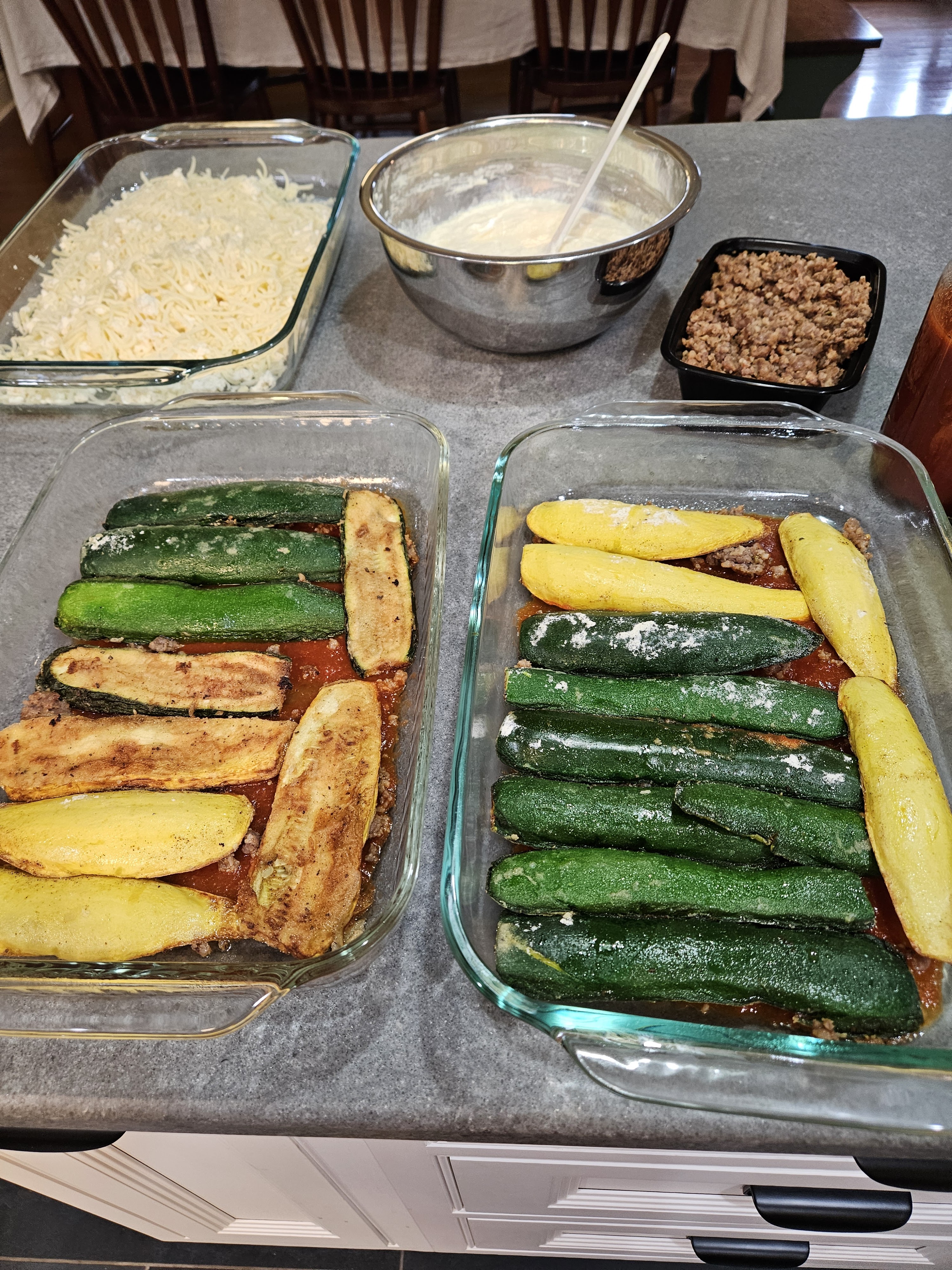 I bought quite a few zucchini and yellow squash because I planned to make 2–13 x 9″ pans of this dish (I sure hope that it’s good!).