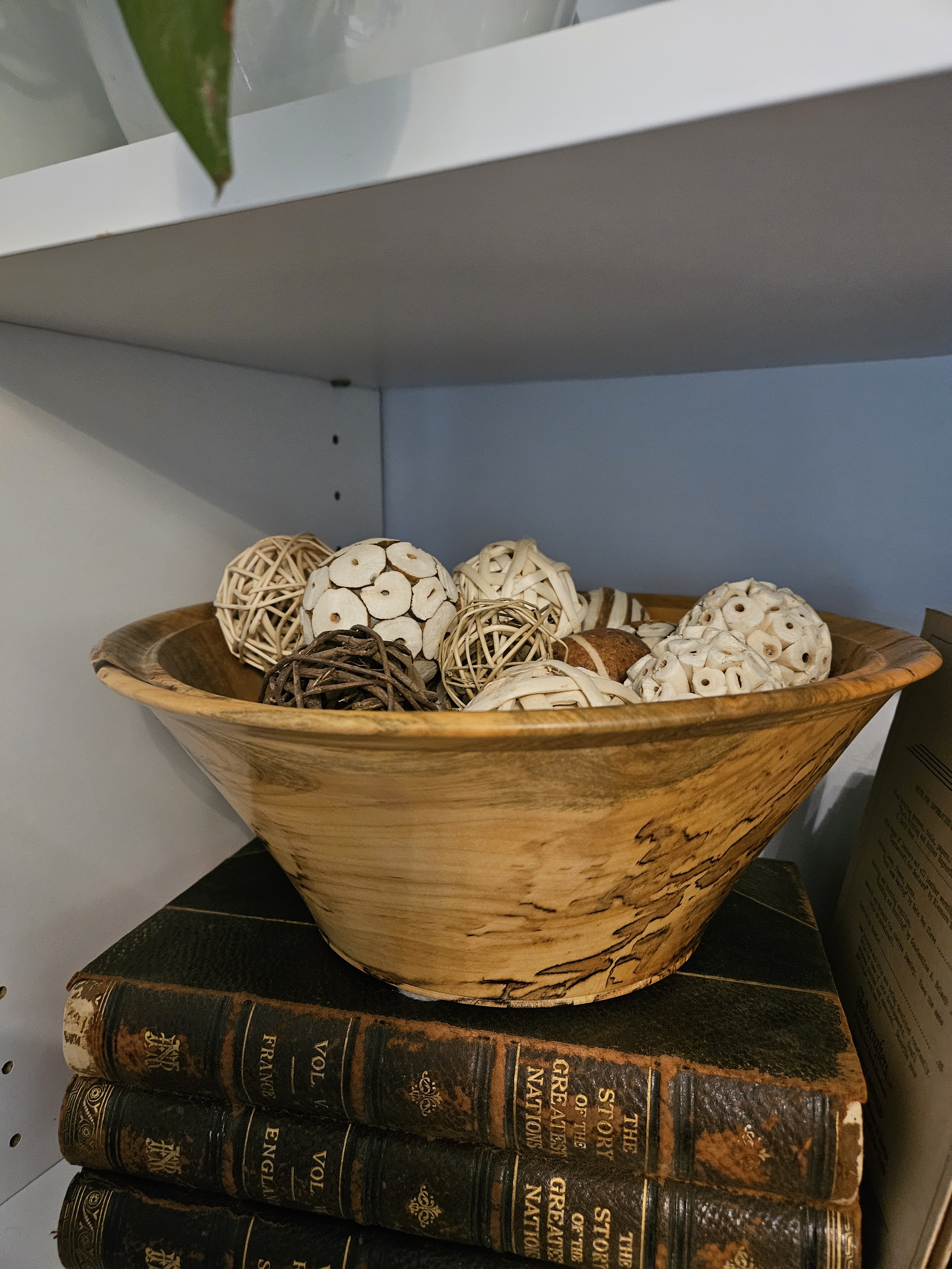 I love to gather like items into bowls, jars, vases, boxes…and my latest addition is some vintage croquet balls. I just bought them from an online auction and they arrived yesterday.