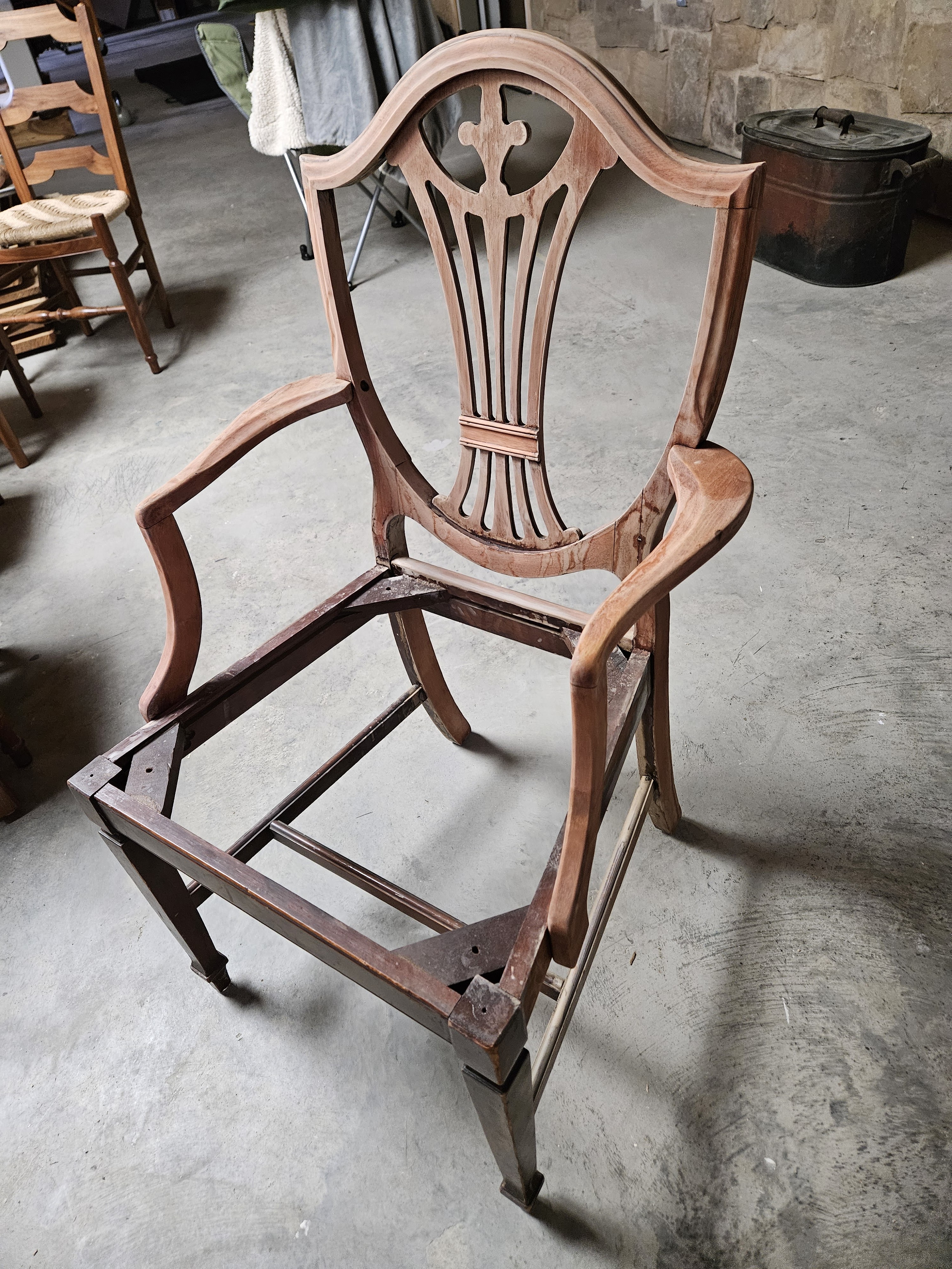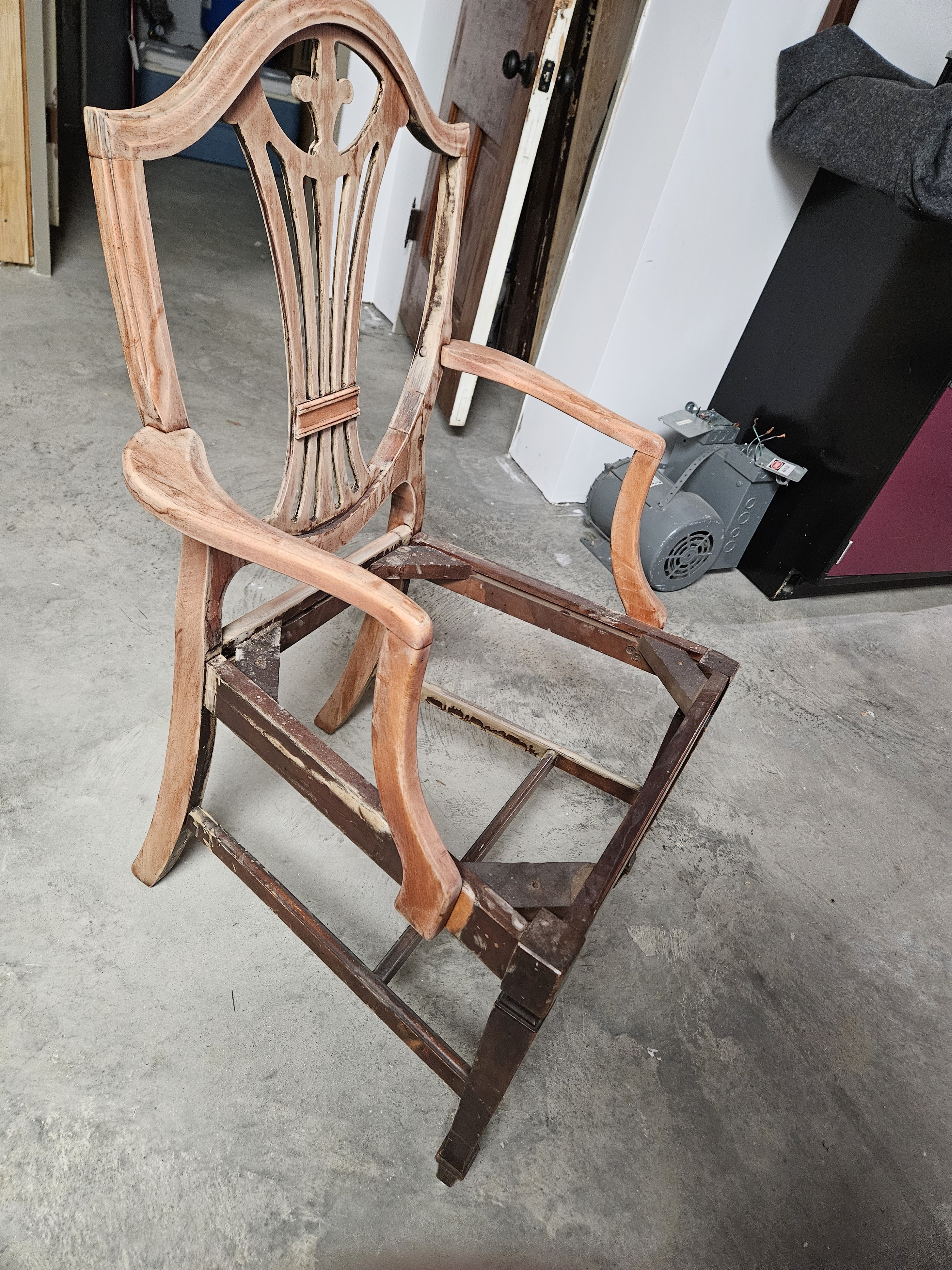 I thought that the shape was really pretty and it would make a good desk chair, or side chair. I didn’t think that it was mahogany under the stain, but I started stripping it to see for sure.