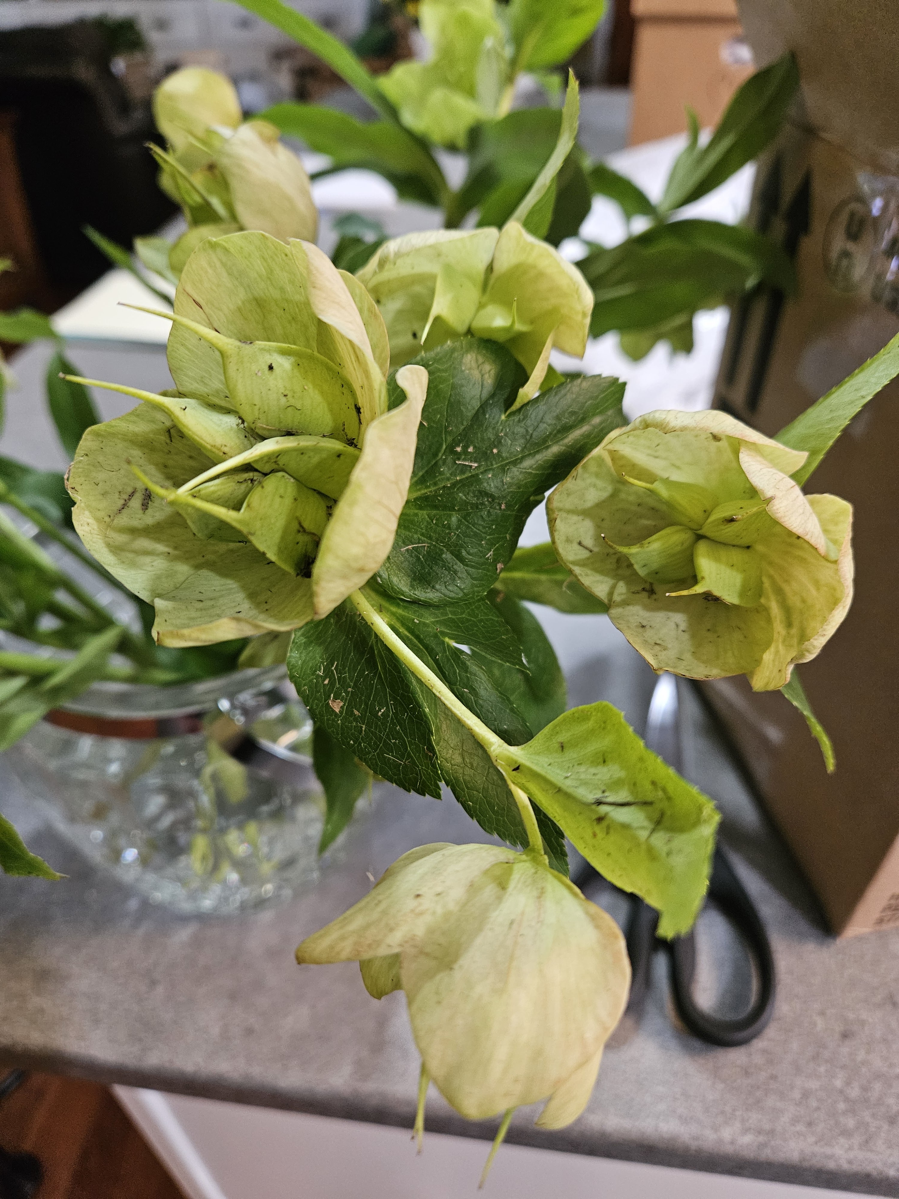 Lenten rose can be tough to use if you pick it too early. If the seed pods are formed, but aren’t turning brown, they are solid in arrangements. I love lenten rose to create the structure/framework for all the other flowers.