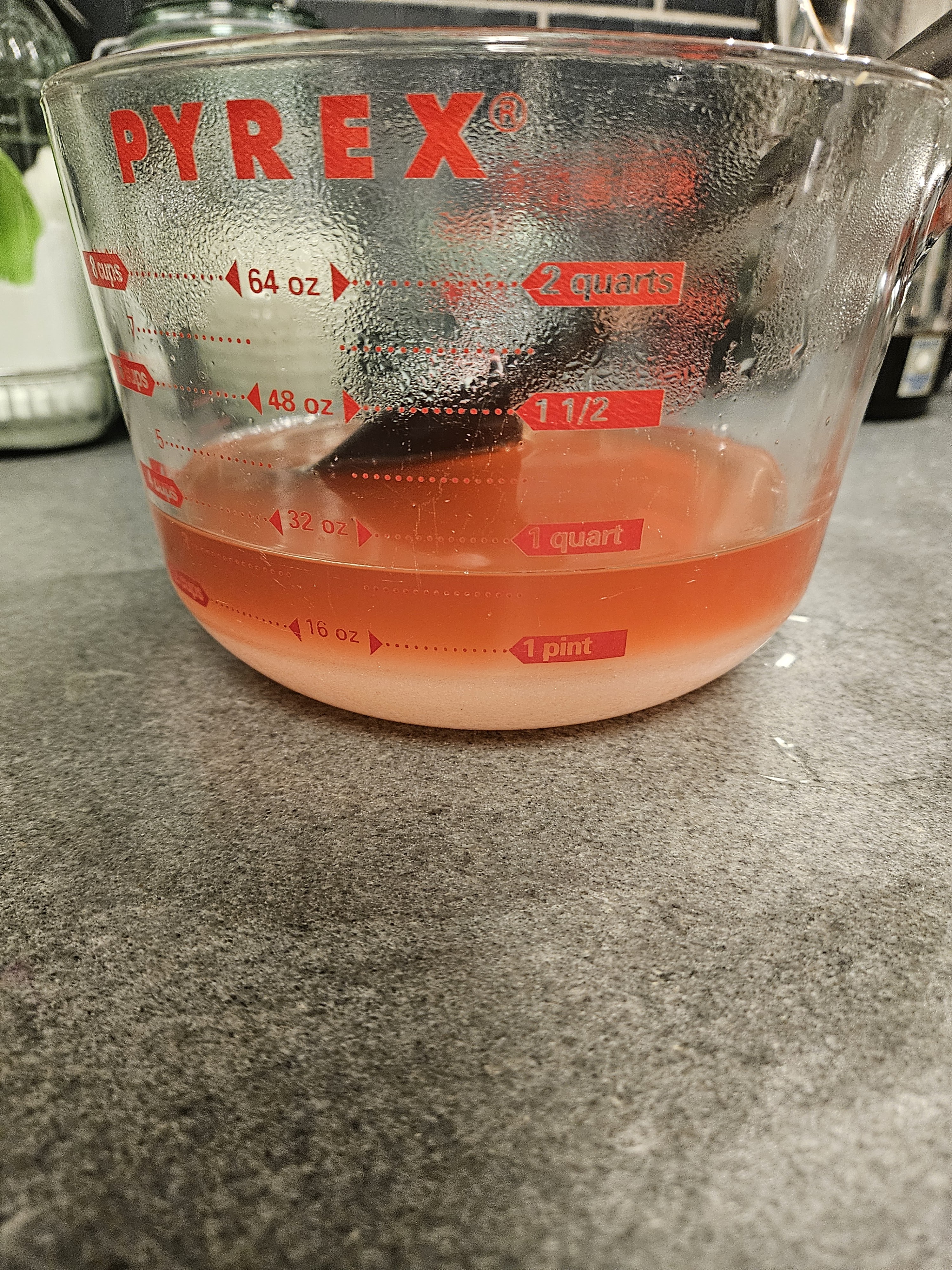 I let it cool to room temperature on the counter and then I put it in the refrigerator. After a couple days, I pulled it out and microwaved it for 5 minutes and then I strained out the rhubarb.