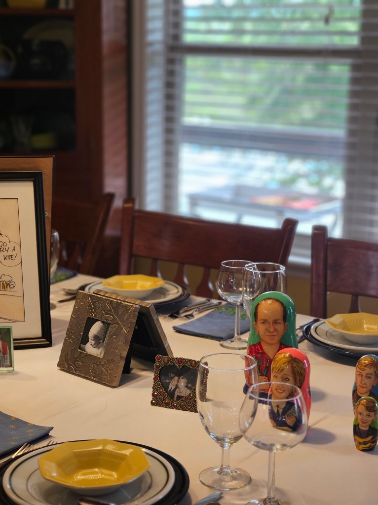 I started this table thinking it would be an ode to artists, but then it was all about our family, so I added some photos and pivoted to an anniversary celebration.