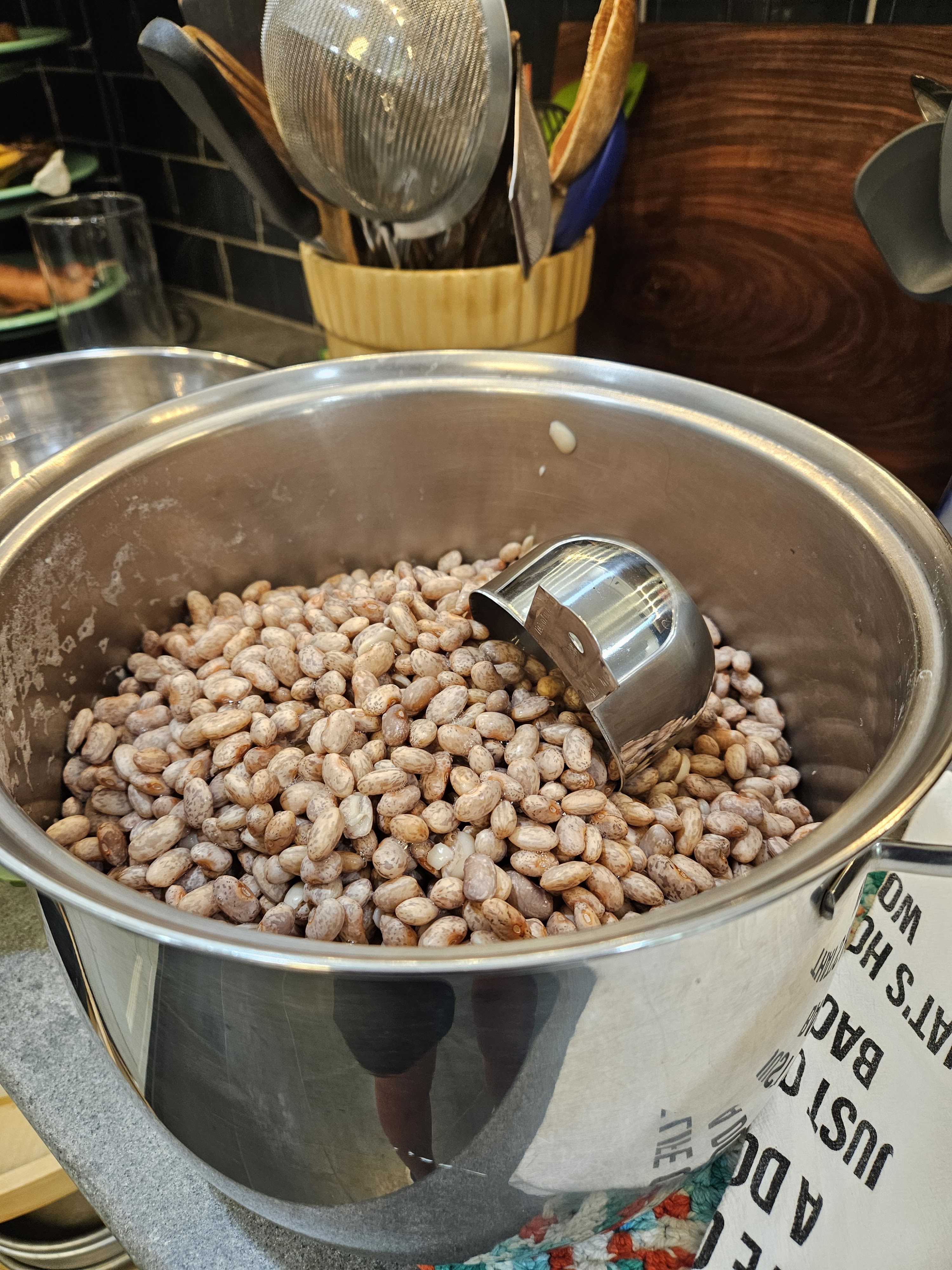 I started by soaking my pinto beans overnight covered by plenty of water. Then I drained them and added them to a LARGE stock pot.
