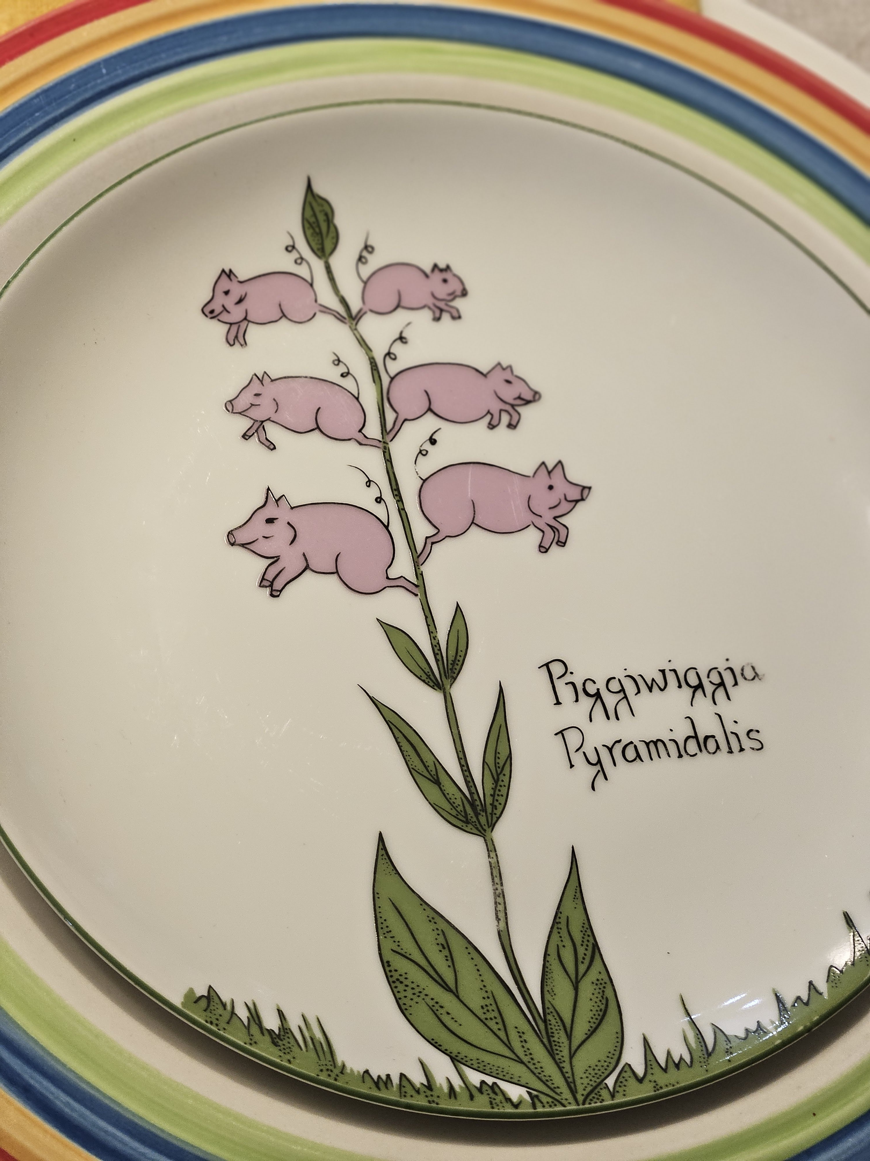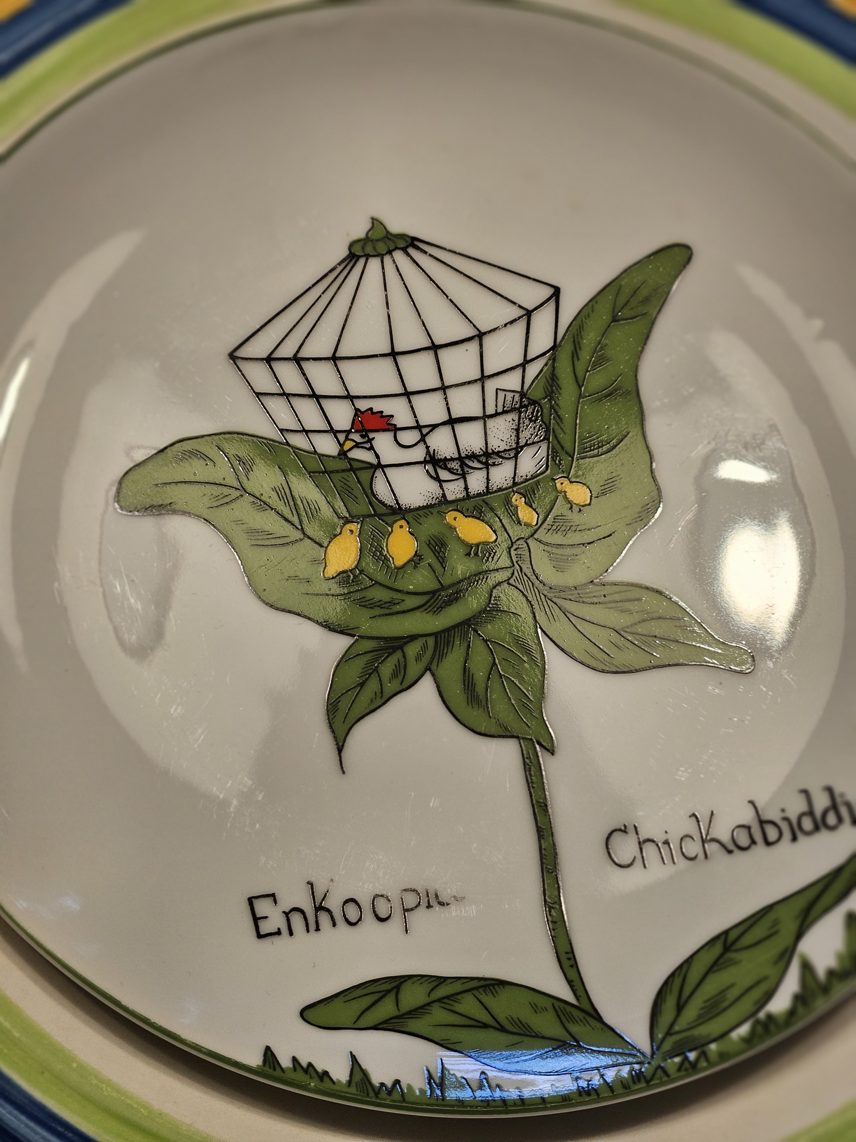 I found the centerpiece bowl by Anthropologie at a consignment store and I thought she was really funny and I had found the salad plates at a thrift store several weeks ago, so it was time to make a table out of them.