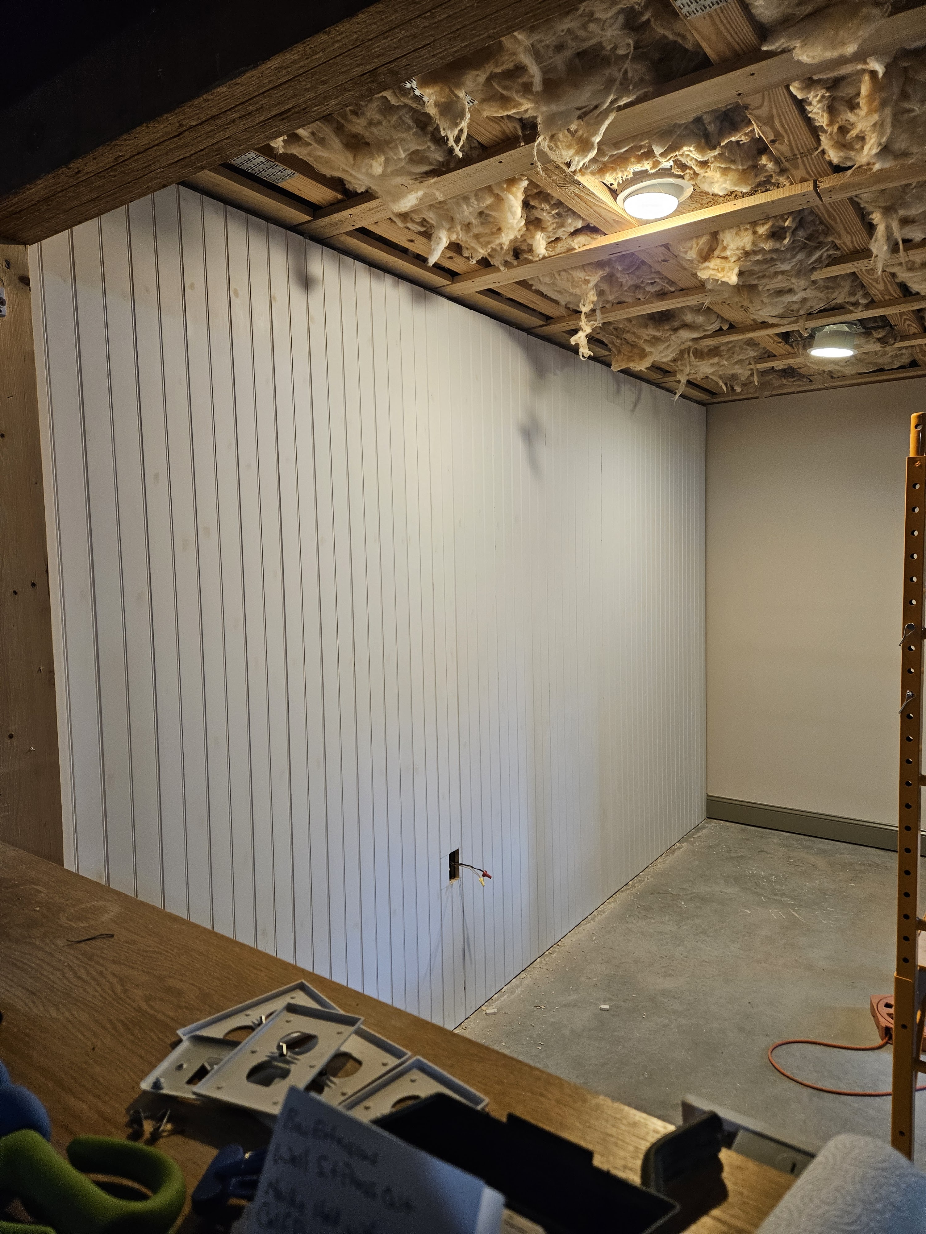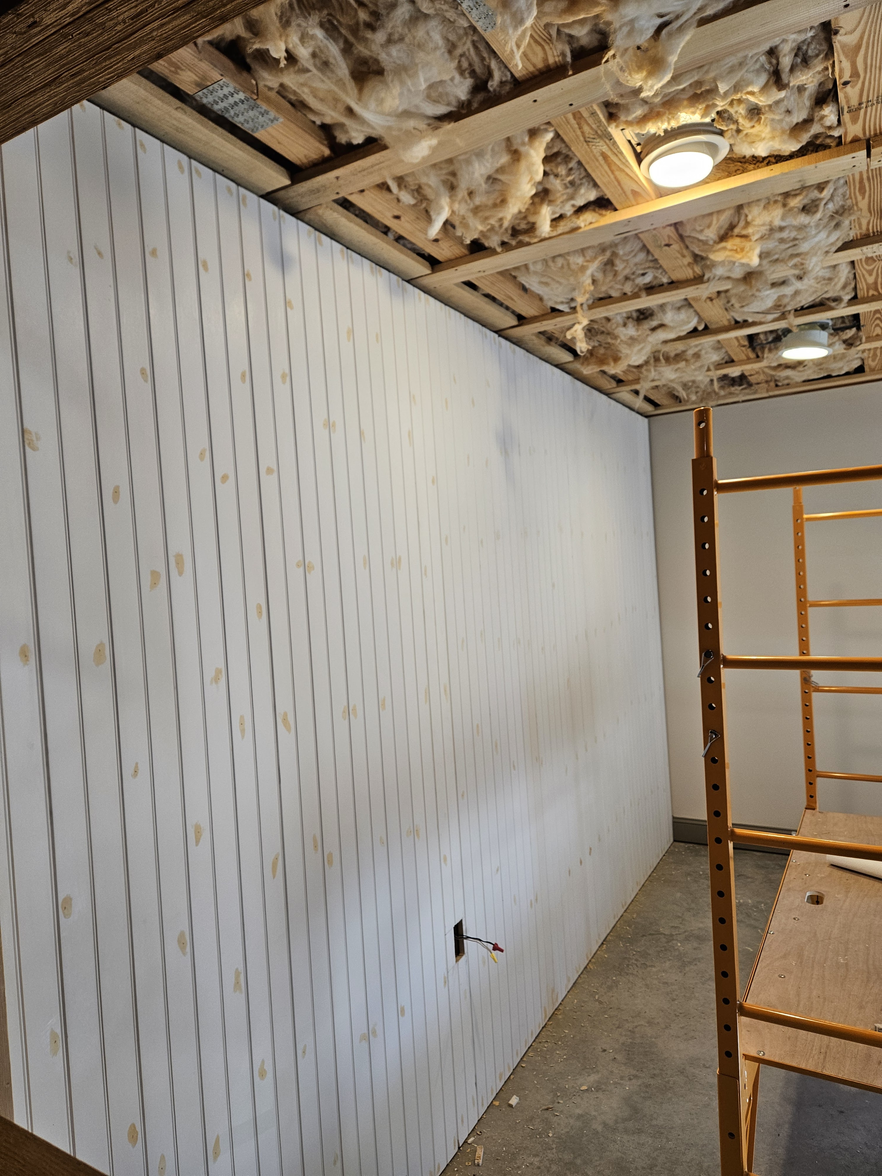 So, I found a beadboard plank product at Lowe’s and we bought enough to cover this entire wall.