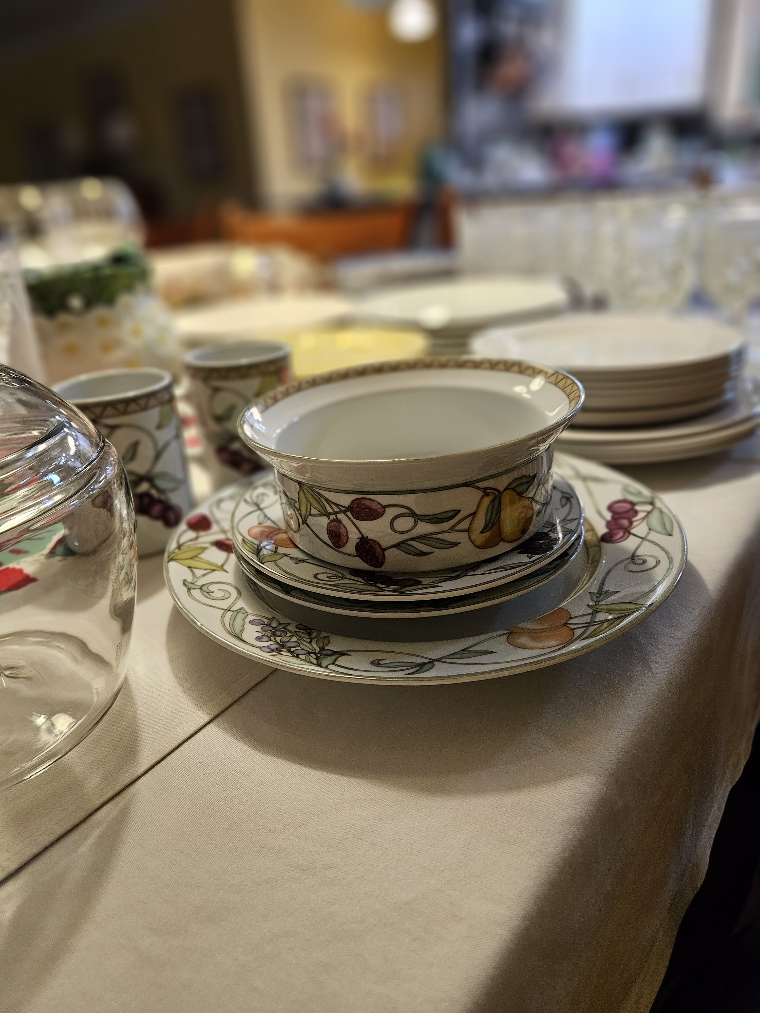 So, over the past year, I’ve become a LOT more selective about what I buy to sell. Some things just aren’t worth fooling with. The things that I have found sell the best are: dinner plates in popular patterns by good makers; certain patterns of glassware–Wexford and Annapolis by Anchor Hocking and Cheers by Mikasa have been good ones for me; pasta bowls; white platters; old Pyrex–if you can get them at a good price.