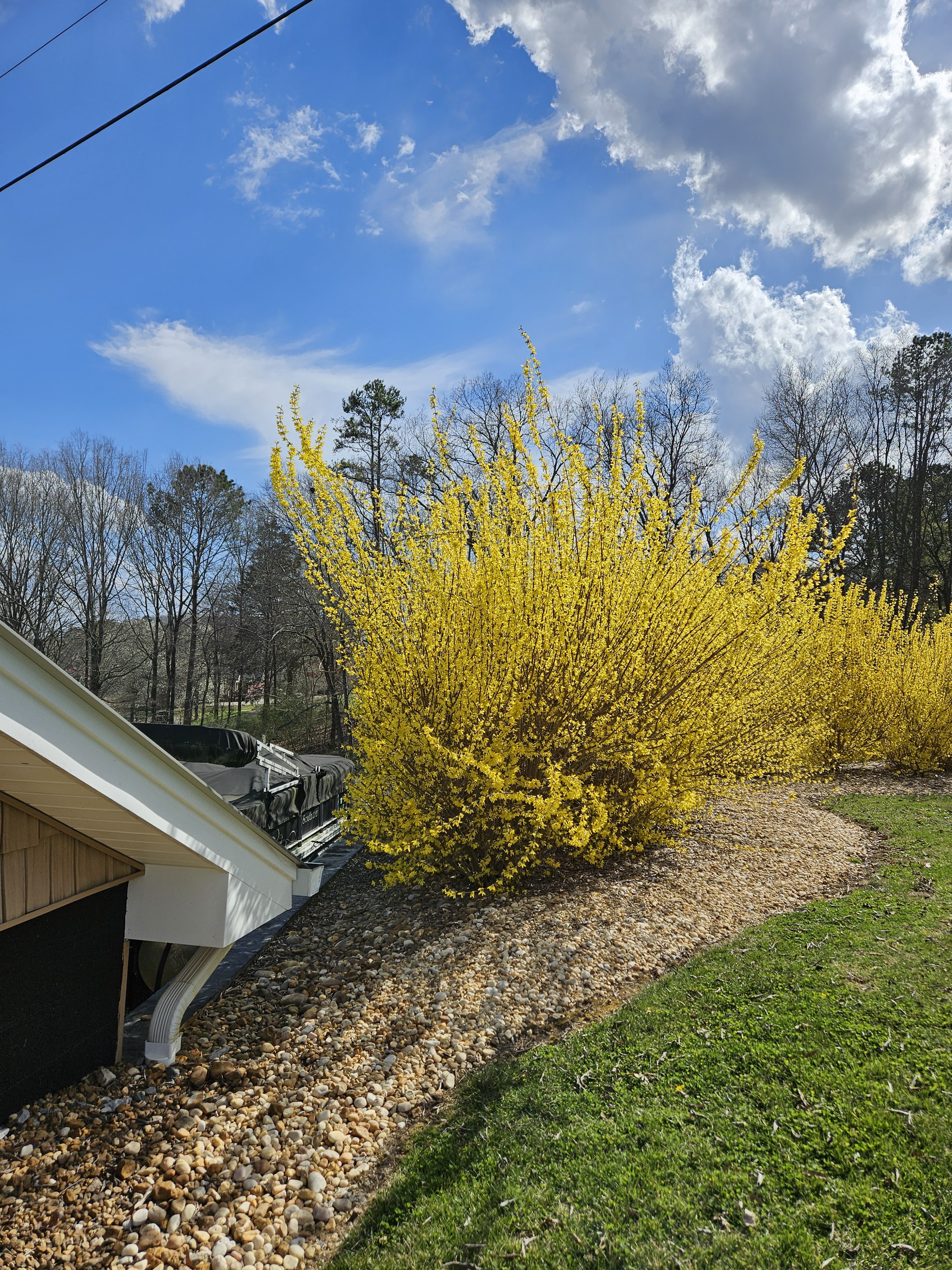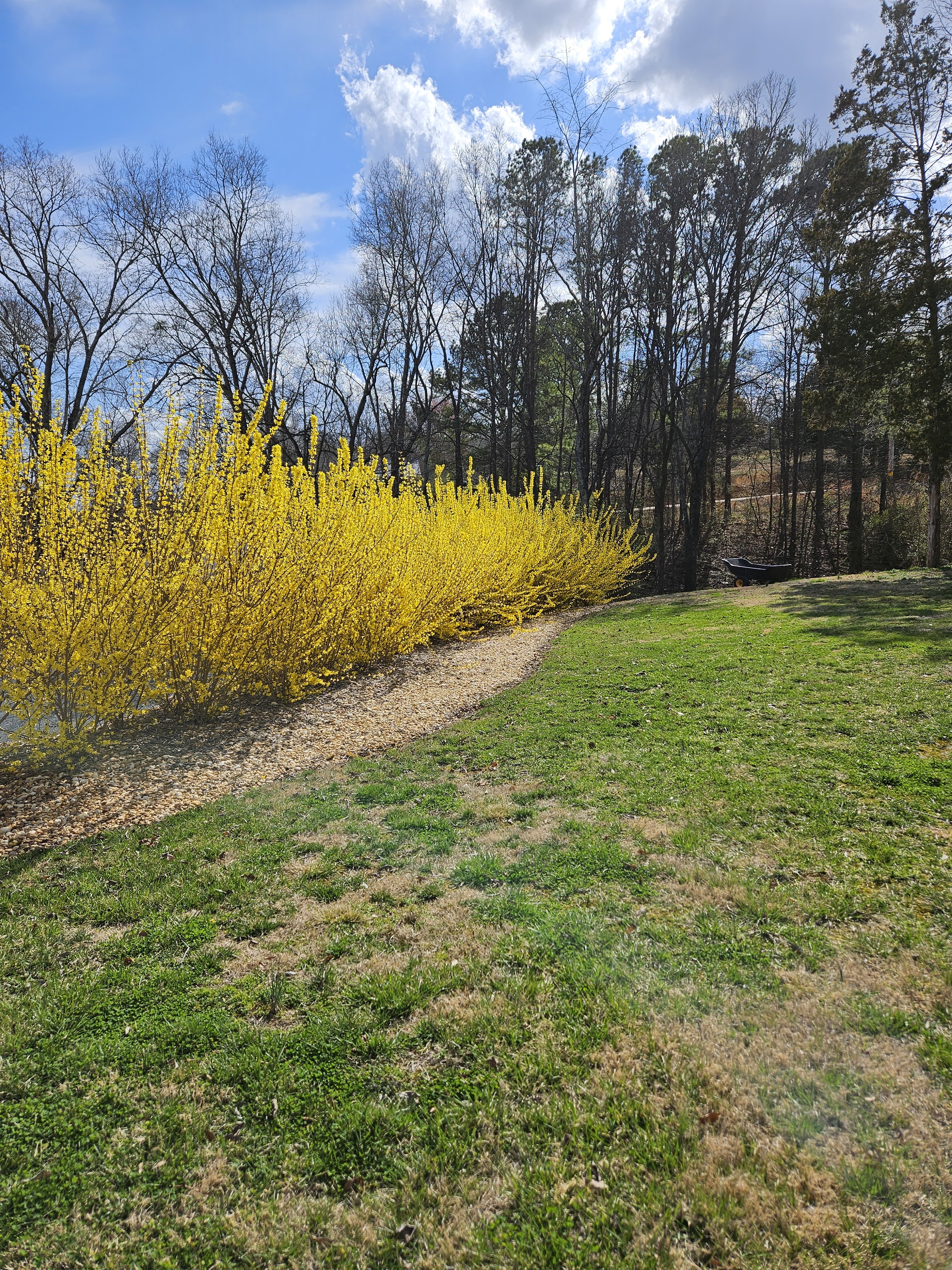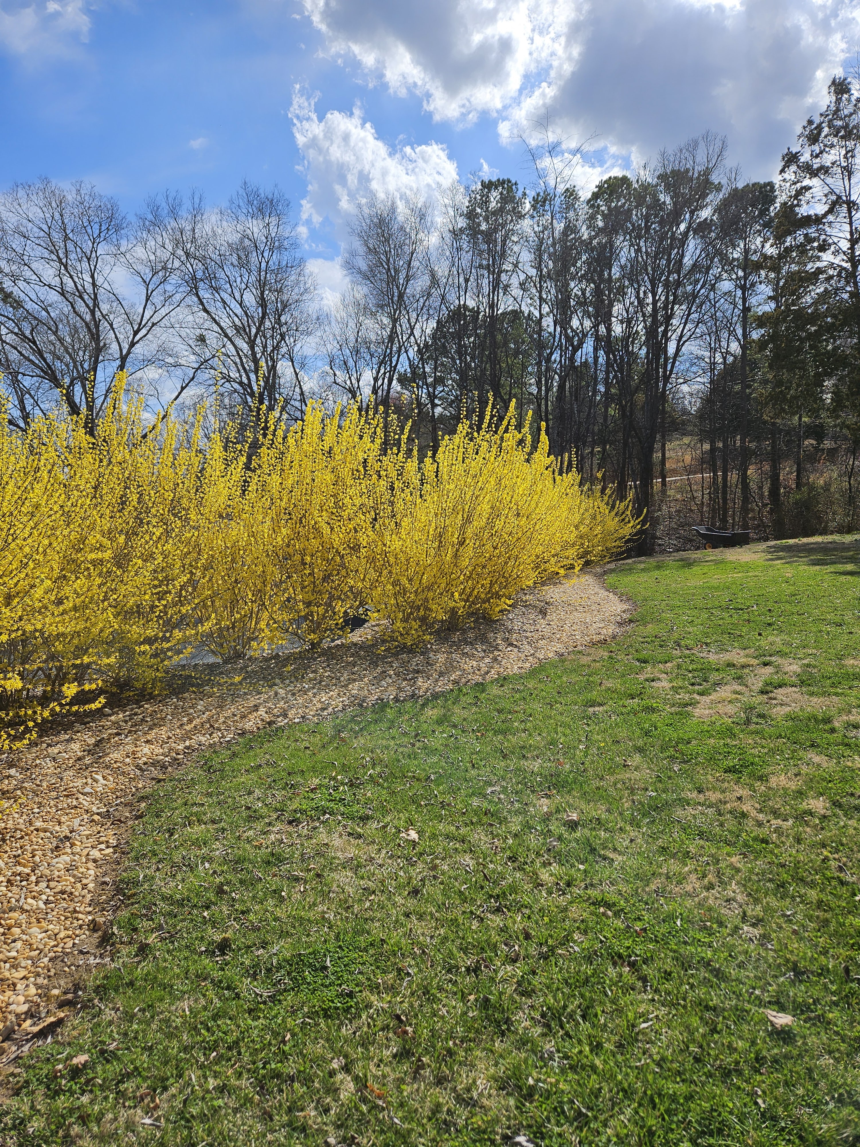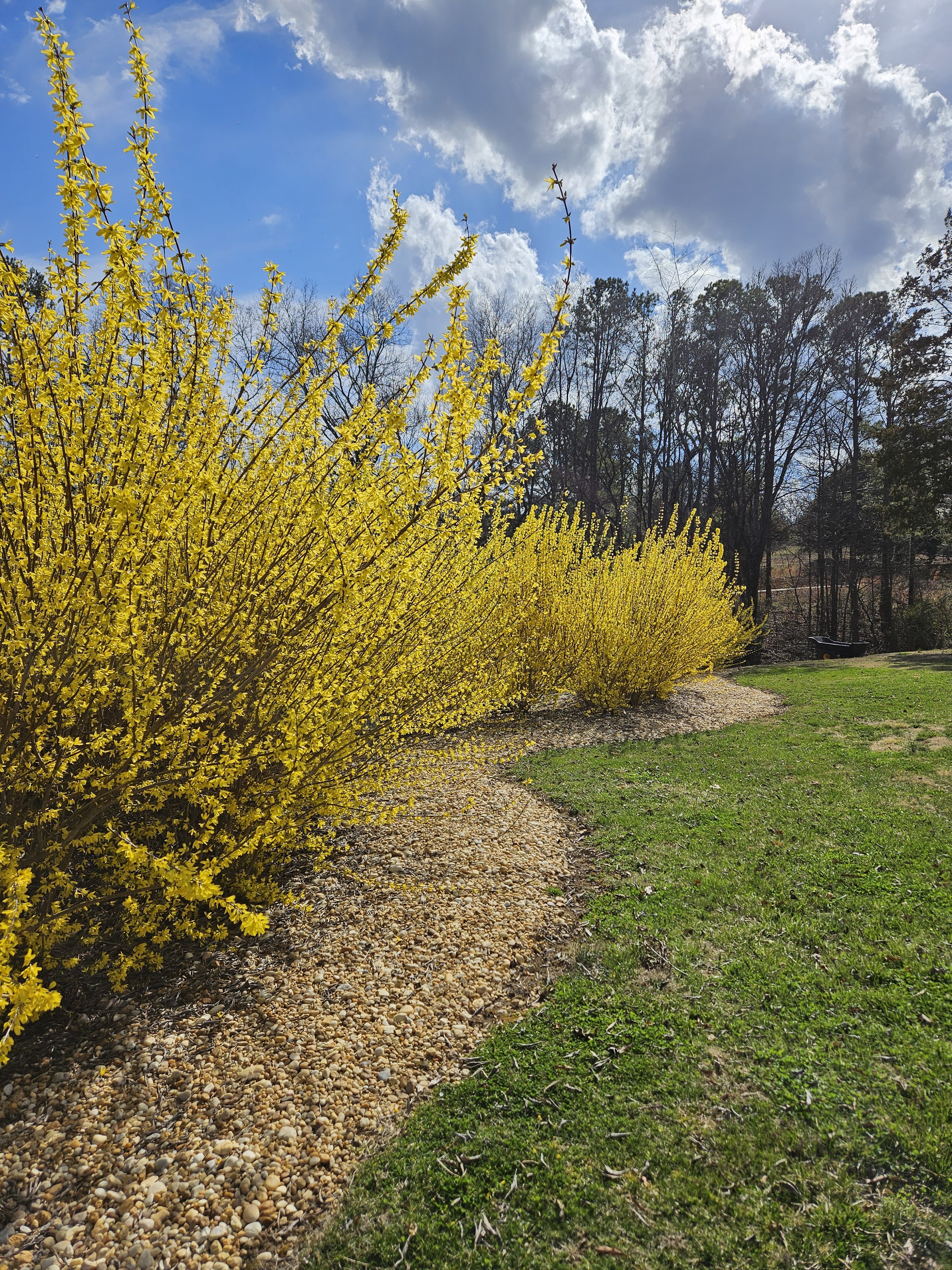 The forsythia that we planted back in 2021–some in the spring and some in the fall–have really come into their own. They are HUGE, which is a little hard to tell from these photos.