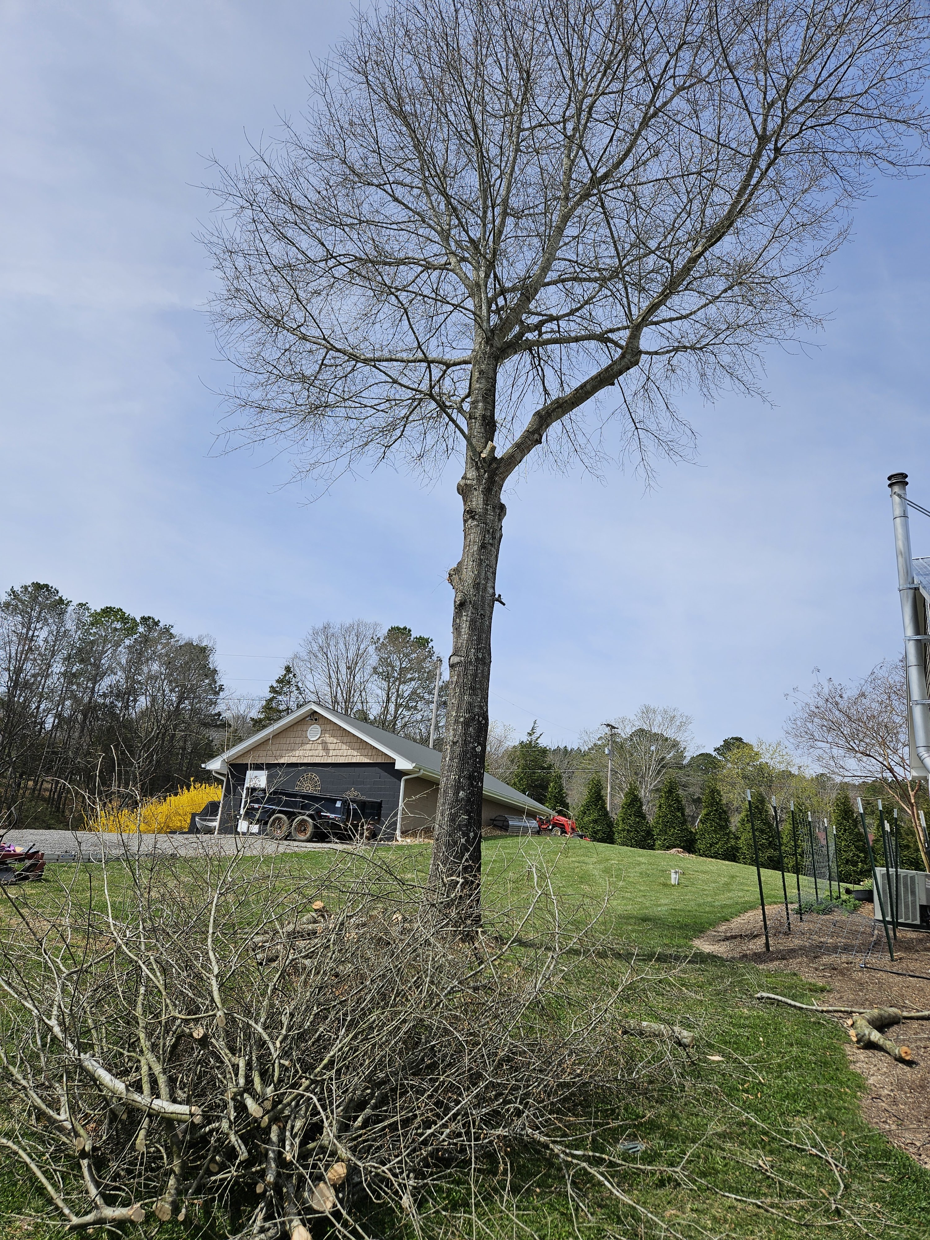 So the process for this type of mushroom is VERY different from the shitake mushrooms that we did. First of all, Maitakes prefer oak trees, which worked out well for us, because my husband did some MAJOR pruning on our oak trees and happened to have large diameter branches for this project.