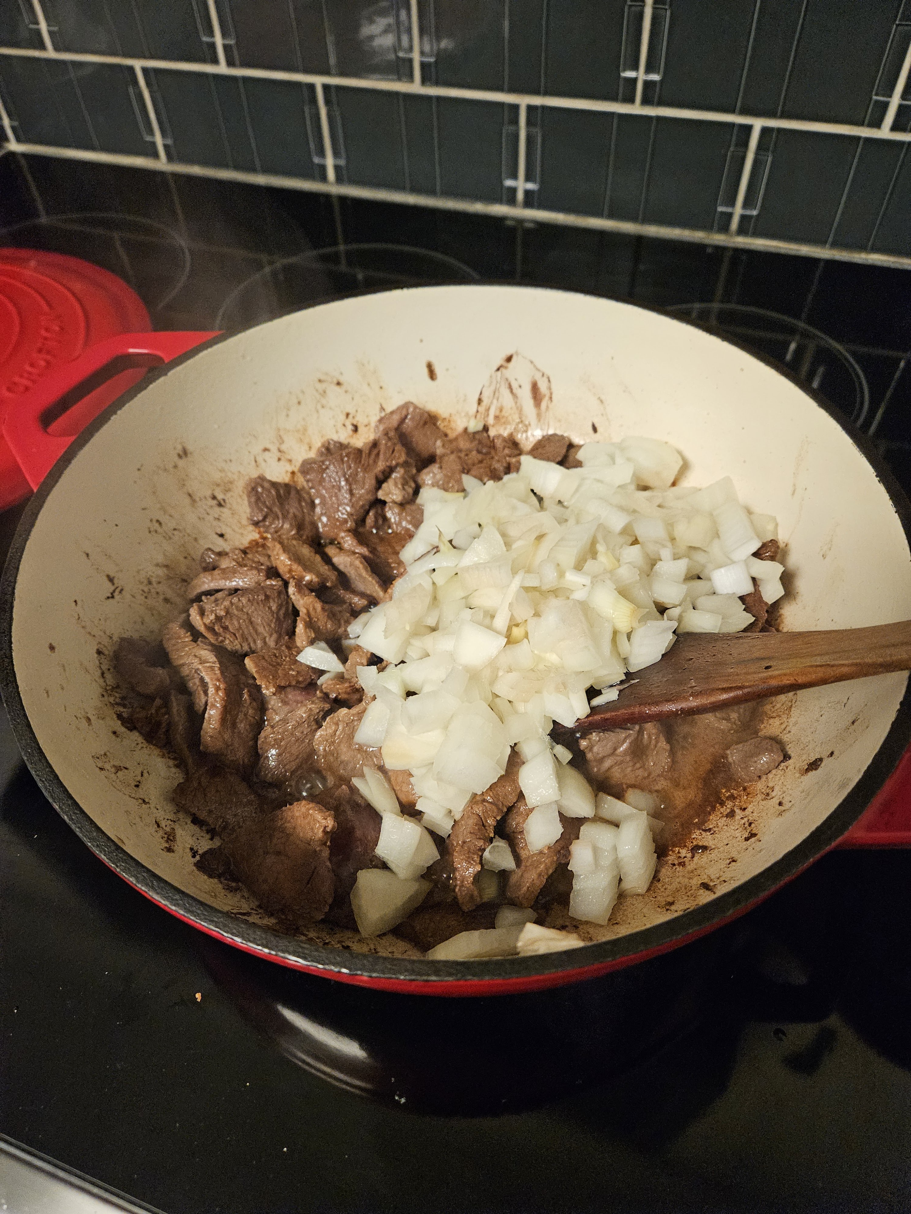 Add diced onion.