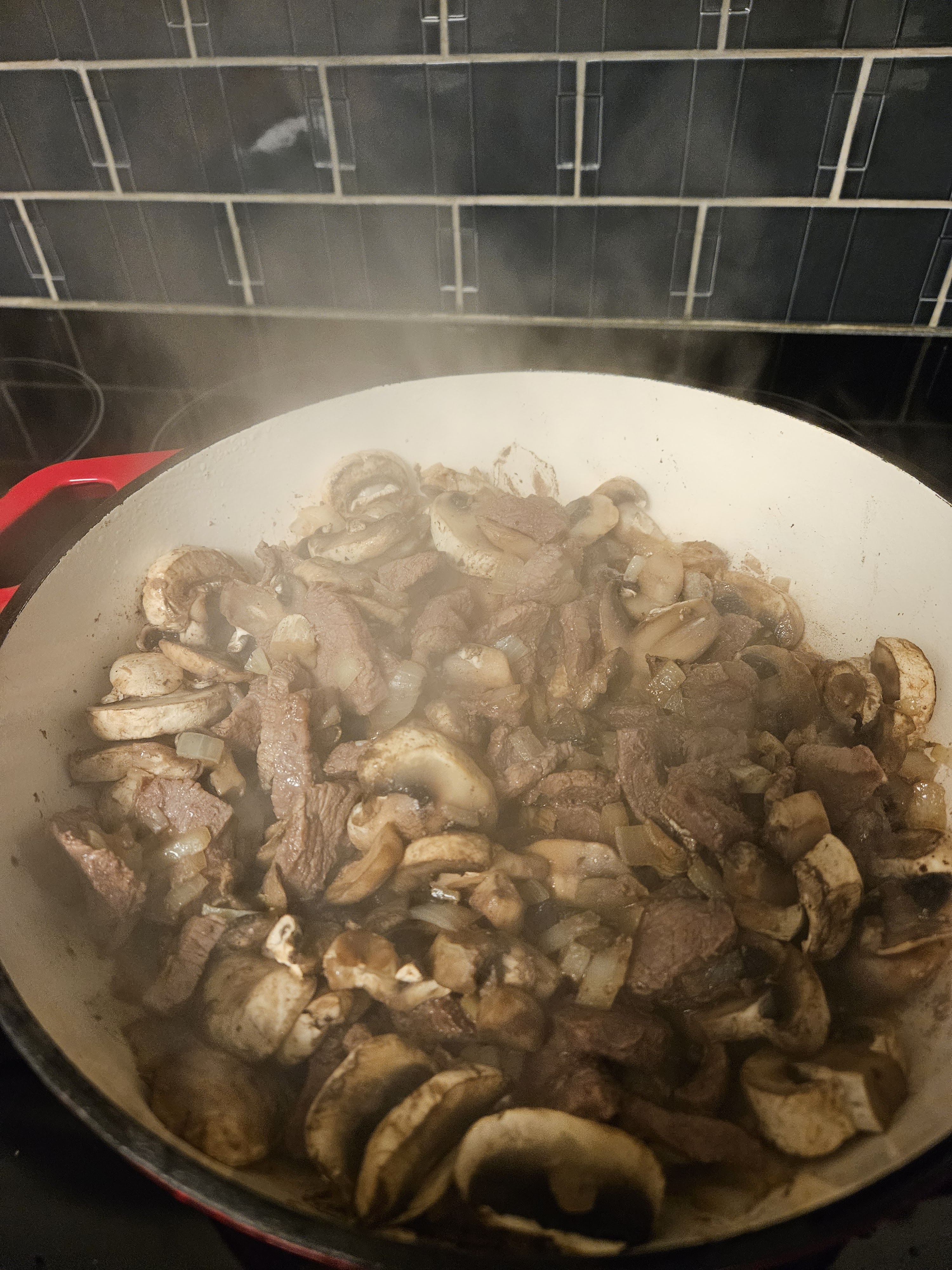 Cover and cook until the mushrooms are cooked through and have released most of their moisture.