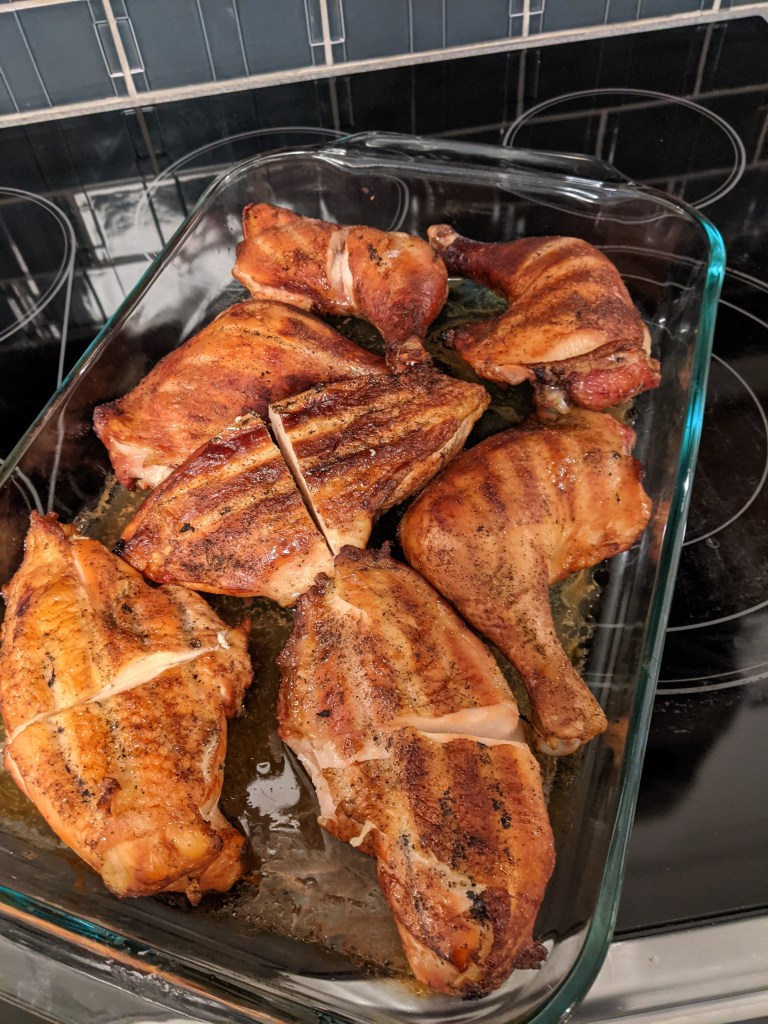 I made some cherry wood smoked chicken to go with all the salads we made this week. I used the same techniques as are used in this YouTube video. https://www.youtube.com/watch?v=nd1rM3CsoN0&t=23s&ab_channel=Tasty