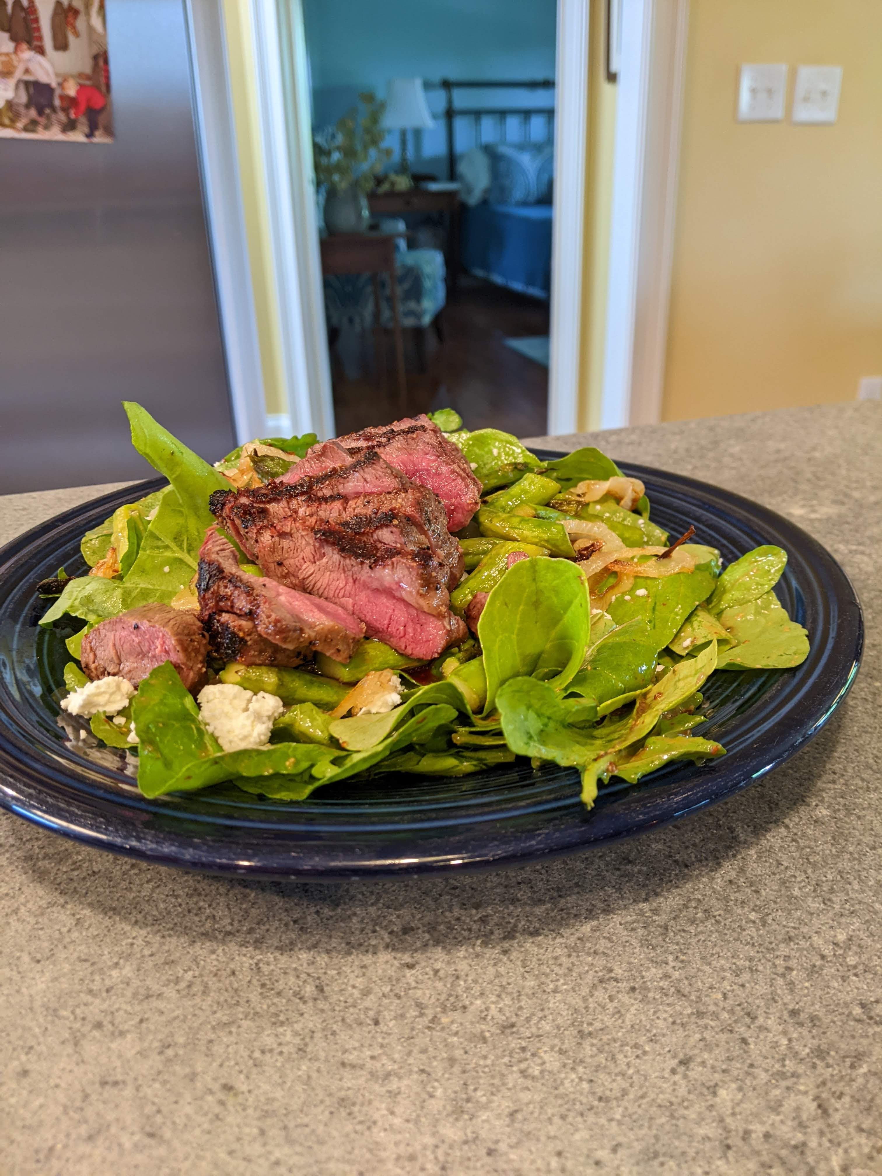 I topped that with the charred asparagus and grilled steak and it was time to eat.