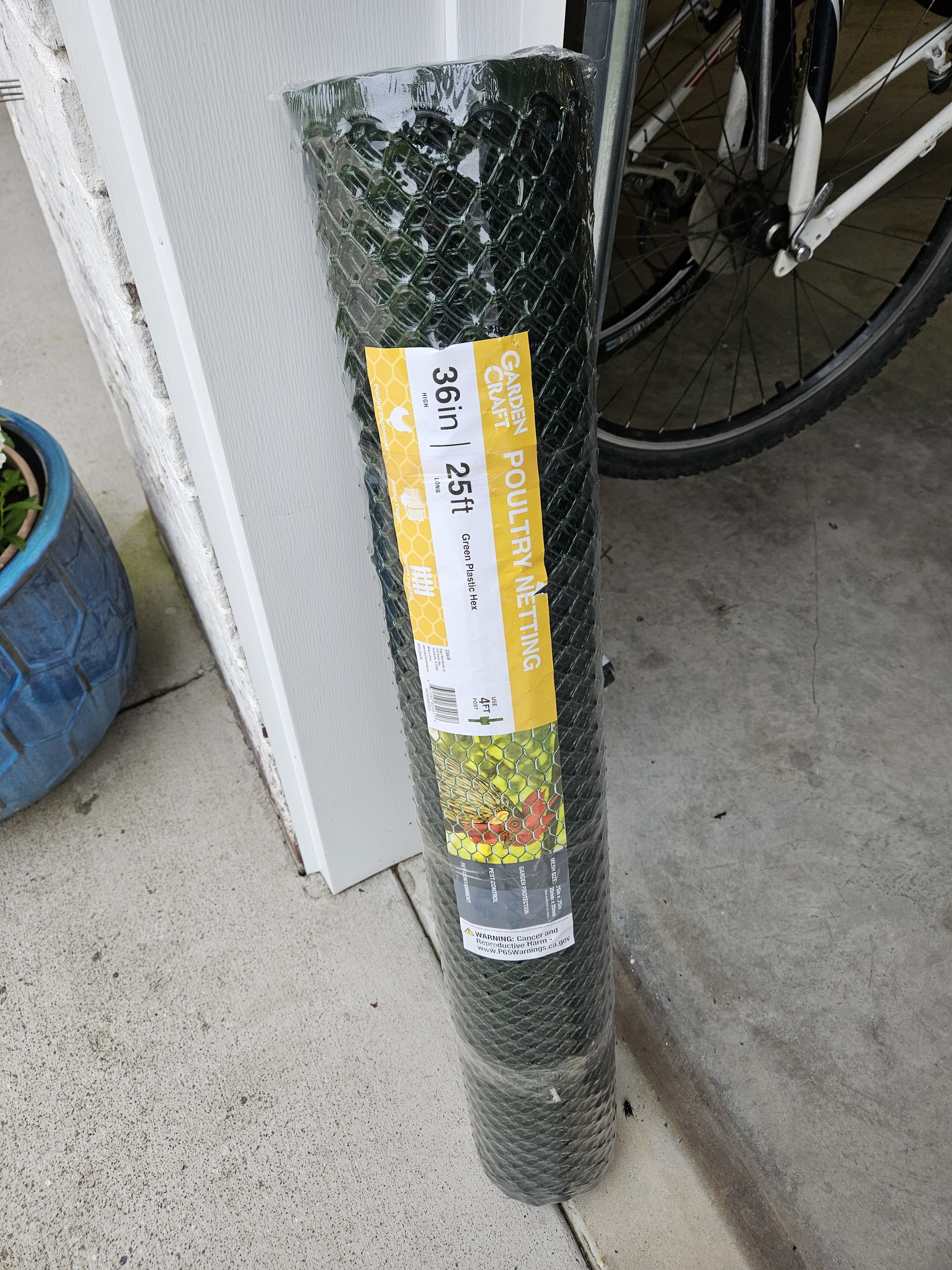 So, I first tried to put up some garden stakes and bird netting, but it didn’t work well, at all. Generally speaking, the ground in our yard is REALLY rocky, but especially so in this part of the yard and I couldn’t get the stakes far enough in the ground to really work.