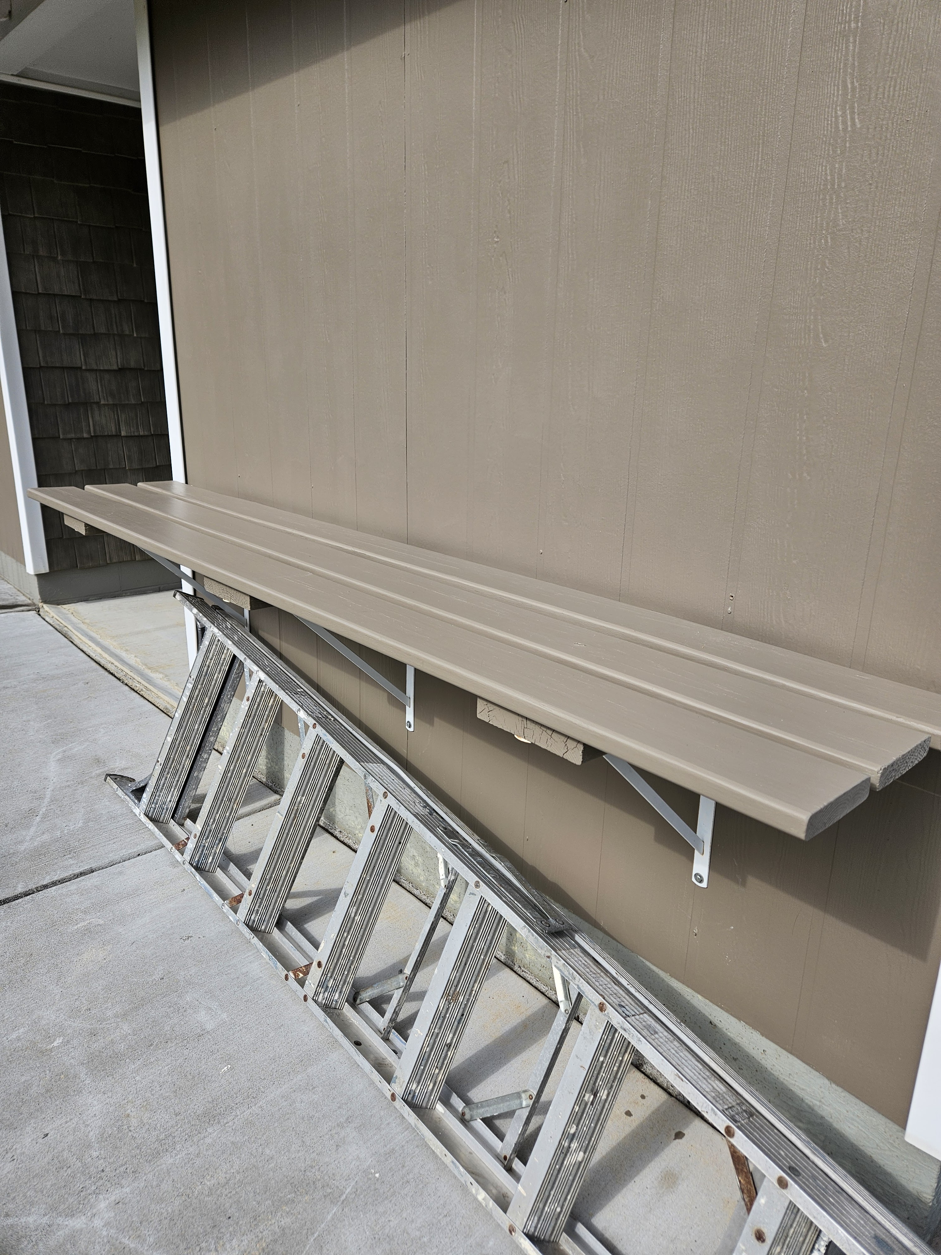 The next day, I needed to take the brackets off of the shelf and clean and stain it and put it back up. To put it back up, I installed the brackets first, and then I put the shelf on top and lined up the screw holes. I was surprised how smoothly and quickly this part went.